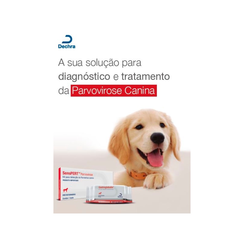 Validade: Maio/2026 Kit para detecção do Parvovirus canino em amostra de fezes. INDICAÇÕES Quando há suspeita de Parvovírus em cães. APRESENTAÇÕES Senspert Parvovirose, cartucho (1 kit diagnóstico) Caixa de papelão ou plástico contendo 1 conta-gotas, mais 1 frasco de vidro ou plástico com 1 mL de diluente, 1 swab, 1 tubo para colheita de amostra e 1 placa-teste, lacrada juntamente com um pacote de sílica-gel. ARMAZENAMENTO Conservar sempre o produto em sua embalagem original, fechada e em local seco, ao abrigo da luz e umidade. Não armazenar junto a produtos tóxicos.