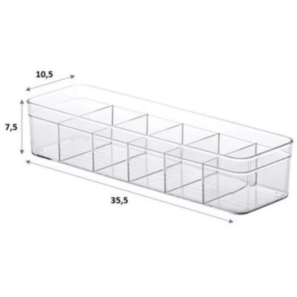 Colmeia Rígida de Acrílico para Cintos – 6 Divisórias Organize seus cintos de forma prática, elegante e funcional com a Colmeia Rígida de Acrílico para Cintos. Ideal para quem busca organização com visual moderno, ela mantém os cintos separados, visíveis e sempre prontos para uso. Produzida em acrílico rígido transparente, oferece excelente durabilidade e acabamento sofisticado, valorizando o interior da gaveta ou do armário. Possui 6 divisórias, perfeitas para acomodar cintos dobrados ou enrolados, evitando marcas e mantendo tudo sempre em ordem. Com medidas de L10,5 x A7,5 x C35,5 cm, encaixa facilmente em gavetas padrão e otimiza o espaço disponível. A limpeza deve ser feita apenas com pano úmido, sem o uso de produtos abrasivos. O que vai na embalagem: 1 colmeia rígida de acrílico para cintos com 6 divisórias. Perguntas Frequentes: Quantos cintos cabem na colmeia? A colmeia possui 6 divisórias e comporta até 6 cintos, podendo variar conforme a espessura. O material é resistente? Sim. O produto é feito em acrílico rígido, oferecendo firmeza, estabilidade e longa durabilidade. O acrílico é transparente? Sim. O material é totalmente transparente, facilitando a visualização dos cintos. Vem mais de uma unidade na embalagem? Não. Cada compra corresponde a 1 colmeia organizadora.