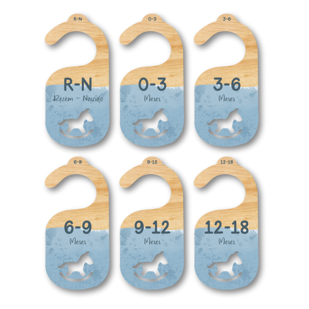 Simplifique a organização do guarda-roupa do seu bebê! Nossos separadores de cabides são perfeitos para organizar as roupas por tamanho, facilitando o dia a dia e adicionando um toque de fofura ao guarda-roupa. Fabricados com precisão em MDF cortado a laser e com impressão de alta resolução (a parte de trás é MDF cru), esses separadores são ideais para pais que buscam praticidade e estilo. Faça seu pedido agora e melhore a organização do guarda-roupa do seu bebê! O kit inclui 6 peças: • 6 separadores de cabides (do tamanho RN ao tamanho 18 meses). Dimensões: • Largura: 8,5 cm • Altura: 17,5 cm • Espessura: 3 mm
