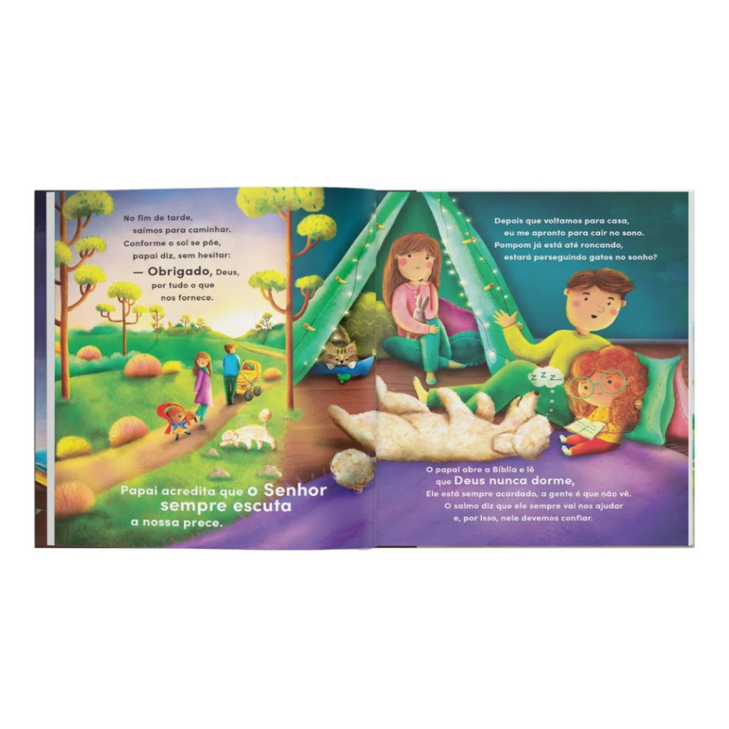 Pati quer descobrir se Deus está sempre cuidando dela.Ele a vê brincando de faz de conta na escola ou derrubando um bolo na cozinha?Ela pode falar com Deus quando está sozinha ou com medo?Deus realmente ouve todas as suas orações?Ao lado de Pompom, seu cãozinho, e o gatinho Melzinho,Pati irá descobrir que sim, Deus está cuidando dela a cada momento. 32 Páginas 21,5x26,5
