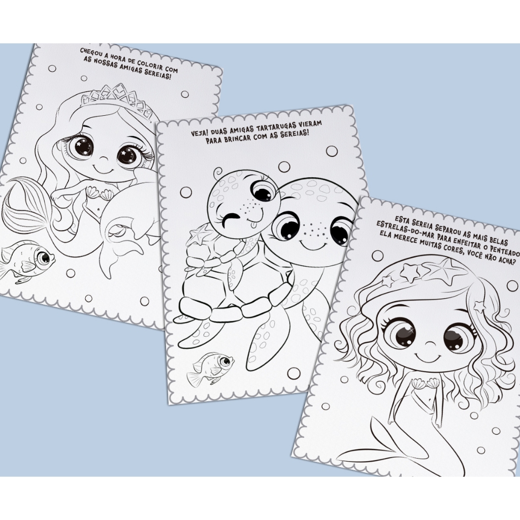Sereias - Colorindo com Adesivos é uma aventura subaquática de colorir, onde as crianças podem dar vida ao mundo das sereias com lápis de cor e mais de 30 adesivos, enquanto exploram as maravilhas das sereias e seus amigos marinhos.