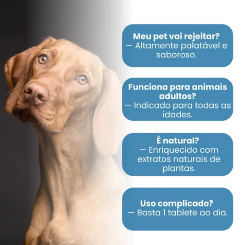 Seu cão merece bem-estar todos os dias! Com Seren Snacks da Ourofino, você proporciona tranquilidade e equilíbrio ao seu pet de forma prática e saborosa. Um suplemento desenvolvido para promover o bem-estar emocional de cães de todas as idades e tamanhos. Características Técnicas: Marca: Ourofino Produto: Suplemento Palatável Anti Stress Nome: Seren Snacks Peso líquido: 84g Formato: Tabletes Unidades por embalagem: 30 Para: Cães adultos e filhotes Raças: Pequenas, médias e grandes Composição principal: Aminoácidos Embalagem: Frasco plástico Livre de glúten: Não Linha: Suplemento comportamental Dicas de Uso e Cuidados: Administre conforme orientação do médico-veterinário. Ideal para cães que enfrentam situações estressantes como viagens, barulhos altos ou mudanças de ambiente. Mantenha o frasco sempre fechado e em local seco, fresco e ao abrigo da luz solar. Conteúdo da Embalagem: 1 frasco com 30 tabletes de 84g no total Perguntas Frequentes: P: É indicado para cães de todas as idades? R: Sim, Seren pode ser administrado em filhotes e adultos. P: Posso dar todos os dias? R: Sim, mas respeite a dosagem recomendada ou consulte o veterinário. P: Tem contra-indicação? R: Não há registros, mas sempre consulte o profissional de confiança. P: Funciona com raças pequenas e grandes? R: Sim, é indicado para cães de todos os portes. P: O produto é original? R: Sim, vendemos apenas produtos 100% originais com procedência Ourofino. Garanta agora o bem-estar do seu cão! Invista na tranquilidade do seu melhor amigo com Seren Snacks. Clique em comprar e proporcione mais qualidade de vida ao seu pet!