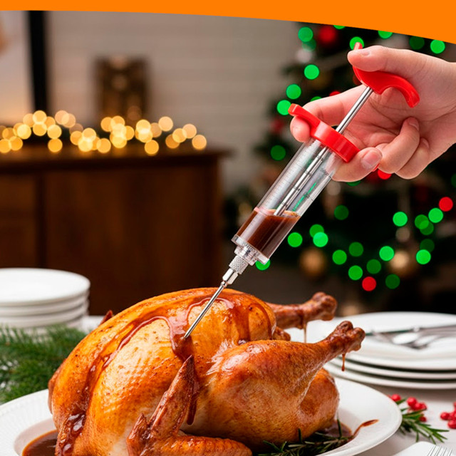 Ideal para injetar temperos, marinadas, molhos e líquidos diretamente em carnes como frango, chester, peru, porco e bovino, deixando os alimentos mais suculentos e saborosos por dentro. Facilita a distribuição uniforme do tempero, melhorando o resultado no preparo assado, grelhado ou na churrasqueira. Fabricada em plástico resistente de uso alimentar, com haste e agulha em aço inox, garantindo durabilidade, higiene e fácil limpeza. ✔ Uso culinário doméstico ou profissional✔ Ideal para carnes, aves e assados✔ Fácil de usar e limpar Material:– Corpo em plástico resistente– Agulha e haste em aço inox Dimensões:– Aproximadamente 22 x 7 cm Cores:– Enviadas de forma aleatória, conforme disponibilidade em estoque Conteúdo da embalagem:– 1 seringa culinária para temperos
