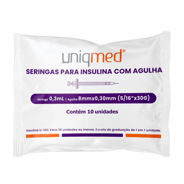 Seringa de Insulina 0,3ml com Agulha 8mm x 0,30mm Caixa com 10 Unidades Uniqmed