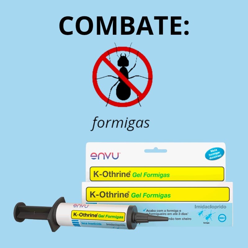 ⚡ ENVIO RÁPIDO!! PEDIDOS POSTADOS EM ATÉ 24H ⚡ 🐜 Dê fim às formigas com rapidez e eficiência! K-Othrine Gel Formigas – 1 Seringa 10g (Envu) Controle eficaz e discreto de formigas com ação rápida! *** Sobre o Produto *** O K-Othrine Gel Formigas da Envu é uma isca inseticida pronta para uso, indicada para controle de infestações domésticas de formigas. Sua fórmula à base de Imidacloprido atrai as formigas, que carregam o gel até o ninho, eliminando a colônia em até 3 dias. Produto inodoro, não mancha, é fácil de aplicar e ideal para uso em ambientes internos como cozinhas, despensas, áreas de serviço e escritórios. *** Como Usar *** • Aplique pequenas gotas do gel em locais onde há passagem de formigas • Não remova as gotas após aplicação • Evite colocar em superfícies lavadas recentemente • Deixe o produto agir: ele elimina toda a colônia silenciosamente *** Benefícios *** • Elimina formigas e o formigueiro em até 3 dias • Inodoro e não mancha superfícies • Fácil aplicação com seringa dosadora • Eficiente, discreto e seguro para o ambiente *** Composição Ativa *** • Imidacloprido 0,03% – potente princípio ativo com ação sistêmica • Gel atrativo que age como isca *** Especificações *** Marca: Envu (anteriormente Bayer) Produto: K-Othrine Gel Formigas Quantidade: 1 seringa com 10g Indicação: Uso doméstico – Controle de formigas *** Conteúdo da Embalagem *** 1 Seringa com 10g de K-Othrine Gel Formigas