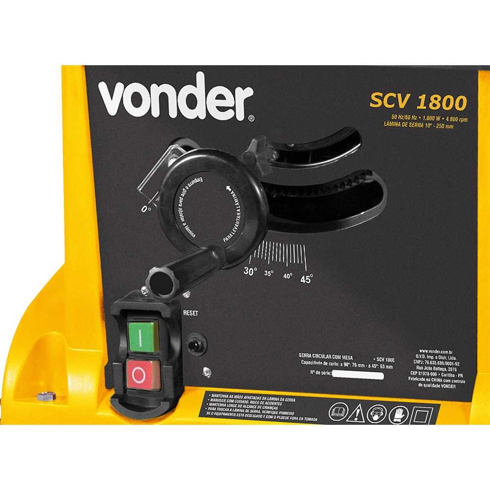 Serra circular de mesa 10" 1800 watts 127V scv1800 Vonder