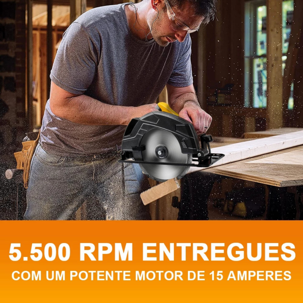 Serra Circular DEWEN 185 mm (7.1/4'') – 1400 Watts – Alta Potência e Precisão no Corte. Com uma lâmina, essa serra oferece a performance necessária para enfrentar até os materiais mais resistentes, como madeiras duras e compensados, garantindo cortes suaves e rápidos. Especificações: DW312 Tensao :110V/127V Potência: 1400W Capacidades de Corte: 90 graus: 65mm 45 graus: 43mm Diâmetro da Lâmina: 185mm Rotações por Minuto: 5000 rpm