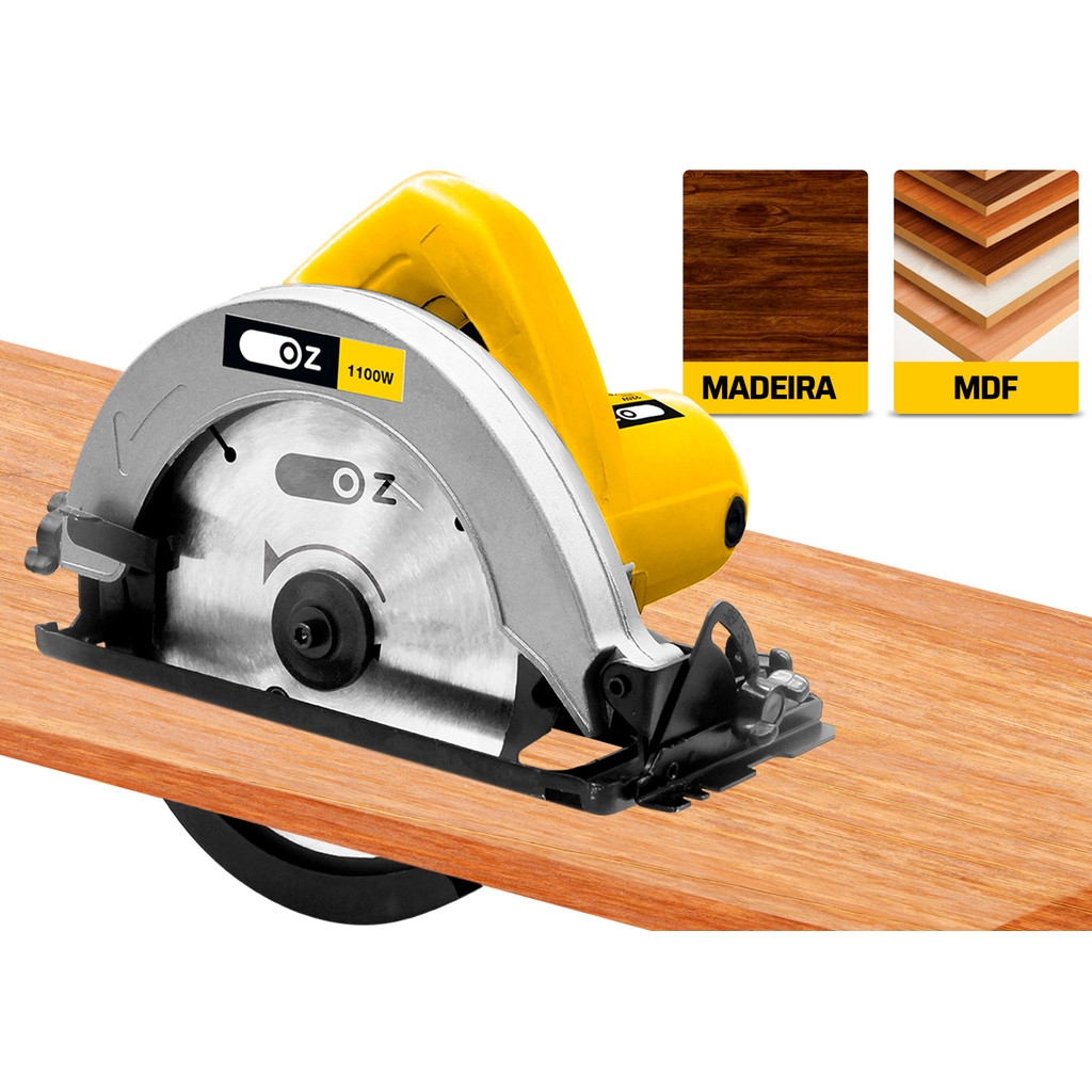 CS1000 - Serra circular p/ madeira 7.1/4" OZ 1100W - 127V A Serra Circular para madeira CS1000 da Oz é 100% rolamentada em toda sua estrutura, aumentando sua durabilidade e proporcionando melhor condição de uso. Possui empunhadura anatômica desenvolvida para conforto e controle do equipamento e precisão em suas aplicações. Conta também com regulador de ângulo e guarda de proteção, diminuindo riscos com pó e estilhaços provenientes do uso do equipamento. É perfeita para trabalhos domésticos ou hobby no corte de madeira e derivados em geral. Equipada com motor de 1.100 watts de potência, rotação de 4.800 rpm, comporta disco de 7.1/4' (185mm). Além disso, a Serra Circular CS1000 é acompanhada de disco de serra para madeira e guia lateral. Características: :: Maquina 100% rolamentada :: Guarda de proteção :: Regulador de ângulo 0 a 45° :: Empunhadura anatômica :: Indicada para cortar madeiras e derivados Especificações Técnicas: :: Voltagem: 127V :: Potência: 1100W :: Capacidade de disco: 7.1/4” (185mm) :: Velocidade: 4800RPM :: Peso: 3.10 kg :: Diâmetro do disco (polegadas):7.1/4 :: Diâmetro do eixo (mm):185 :: Rotação máxima (rpm):4800 Conteúdo da embalagem: :: 1 Serra Circular :: Guia lateral :: 1 disco de serra para madeira 7.1/4” (185mm) Garantia: 12 meses SKU: 21261 Distribuído Por Ismafer Ferramentas