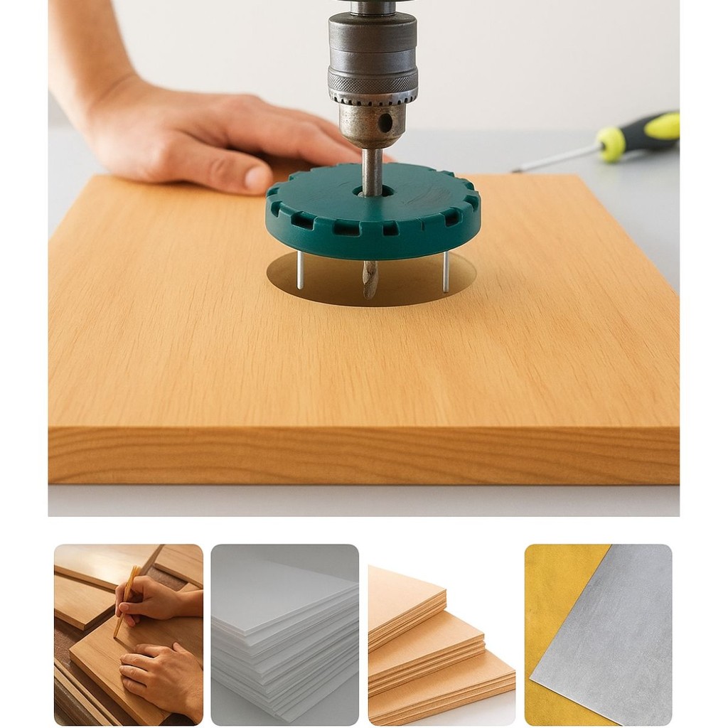 Serra Copo Ajustavel Hole Opener Para Drywall Madeira Plastico 45 A 130mm Ajuste contínuo em três etapas: soltar e apertar, segurar. Corte limpo e fino: três cortadores de três dentes podem facilmente cortar drywall e placas de cortiça, e suas serrilhas especiais garantem um corte limpo e fino. Multiuso: amplamente utilizado para aberturas de carpintaria, aberturas de holofotes, aberturas de papelão plástico, aberturas de alto-falantes, etc., mas não para vidro e metal. A serra de orifício é de cerca de 10 mm, é adequada para todas as furadeiras elétricas padrão e parafusadeiras. Características: Material: Nylon + Liga de alumínio zinco Profundidade de corte: 30mm Diâmetro do eixo: 8,5 mm Faixa ajustável: 45mm-130mm Comprimento do eixo: 25mm Diâmetro do produto: cerca de 15,5 cm Dimensões: 14,5 x 14,5 x 2 cm Peso: 400 g