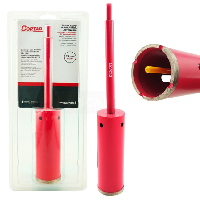 Serra Copo Alvenaria Diamantado Com Haste E Pino 53mm 61899 Profissional - Cortag