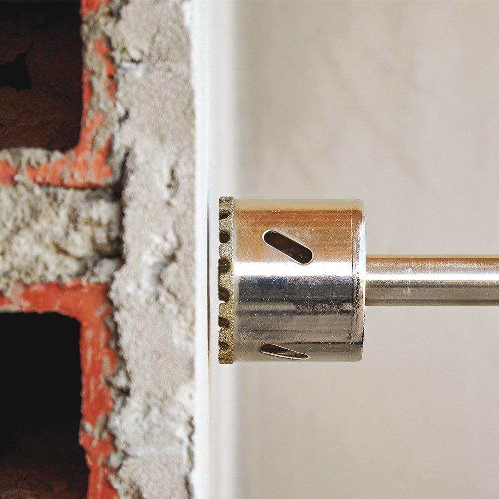 Serra copo diamantada com haste de encaixe hexagonal e pino guia para furos que exigem mais precisão, fabricado em material resistente proporcionando resistência, durabilidade e alta performance. Indicado para aplicações sem refrigeração (alvenaria, blocos cerâmicos, tijolos e telhas) e com refrigeração (porcelanatos, pisos e revestimentos, pedras, granitos, mármores, ardósia e materiais similares), ideal para instalações de ar-condicionado, instalações hidráulicas (tubulações e torneiras) e instalações elétricas (fios, cabos, telefonia, cerca elétrica etc.). Podem ser utilizadas em todos os tipos de máquinas, hobby, profissional e industrial com mandril tradicional. - Especificações Técnicas: - Haste de: 150mm com encaixe hexagonal - Encaixe SDS: 200mm (com pino guia) - Diâmetro da serra copo: 53 mm (2.3/32 Pol.) - Profundidade de corte de: 38mm (1.1/2 Pol.) - Linha completa de diâmetros de: 14 a 152 mm - Garantia: 1 ano