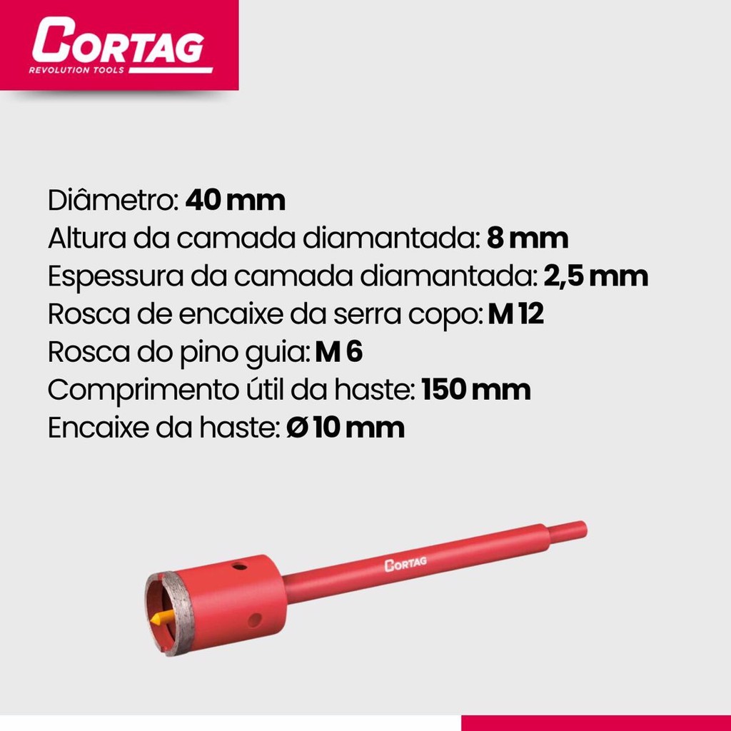 Serra Copo Diamantada P Alvenaria Haste e Pino Guia 40 Mm