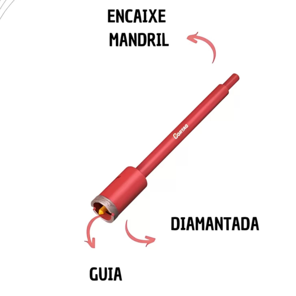 COMERCIAL VIPASA DISTRIBUIDORA. Serra Copo Diamantada Perfurar Circular Porcelanato Parede Piso Concreto Cerâmica Alvenaria Várias MedidasDESCRIÇÃO:Disponível nos diâmetros de 20mm à 110mm, nossa serra copo pode furar materiais como alvenaria, cerâmica, porcelanato, granito, mármore, refratário, pedra, parede, azulejo, piso e revestimento cerâmico, telha, bloco cerâmico, bloco de concreto, tijolo, tijolo baiano, pedra grés, pedra miracema, ardósia, pedra Goiás, pedras ornamentais, pedra mineira, arenito, basalto, quartzito, nanoglass, silestone, stoneglass, mármore travertino, mármore importado, granito branco, granito duro, granilite, granitina entre outros materiais similares.UTILIZAÇÃO:A serra copo diamantada é ideal e muito utilizada na instalação de ar condicionado split, refrigeração, serviços de telecomunicações (Telecom),instalações elétricas, instalações de caixas 4x2 e 4x4, caixas de passagem, tomadas, telefonia, guarda corpo, portas pivotantes, manutenções prediais/hidráulicas como ralos, registros, tubulações, esgotos, pontos de água, gás, fixação de escadas, portões, telas de proteção para piscina, redes entre outros.1. Tipo de Ferramenta:Serra Copo: Uma serra específica para fazer cortes circulares, formando orifícios em diferentes materiais.2. Marca:Cortag: Indica a marca da serra copo. A marca pode ser associada à qualidade e confiabilidade do produto.3. Haste:A presença de uma "haste" sugere que a serra copo está equipada com uma estrutura que facilita sua fixação em uma furadeira ou outra ferramenta elétrica. A haste é essencial para garantir a estabilidade durante o processo de corte.4. Material de Fabricação:Construída com materiais de alta qualidade, como aço ou carbeto de tungstênio, para garantir durabilidade e eficiência durante o corte.5. Diâmetro da Serra Copo:As serras copo podem estar disponíveis em diferentes diâmetros para atender às necessidades específicas de corte.6. Indicação de Uso:Adequada para cortar diversos materiais, como madeira, plástico, metal, entre outros, dependendo das especificações do modelo.7. Profundidade de Corte:Pode variar dependendo do modelo e do tipo de material que a serra copo está destinada a cortar.8. Aplicações:Ideal para trabalhos de marcenaria, construção civil, instalação de tubulações, entre outras aplicações onde cortes circulares são necessários.9. Características Adicionais:Pode incluir características como dentes afiados para cortes precisos, revestimento antiaderente para facilitar a remoção de resíduos e facilitar a manutenção.10. Instruções de Uso:- A embalagem ou o manual do produto geralmente fornece instruções detalhadas sobre como utilizar a serra copo com eficácia e segurança.11. Armazenamento:- Pode incluir recomendações sobre como armazenar a serra copo adequadamente para preservar sua qualidade e vida útil.COMERCIAL VIPASA DISTRIBUIDORA.