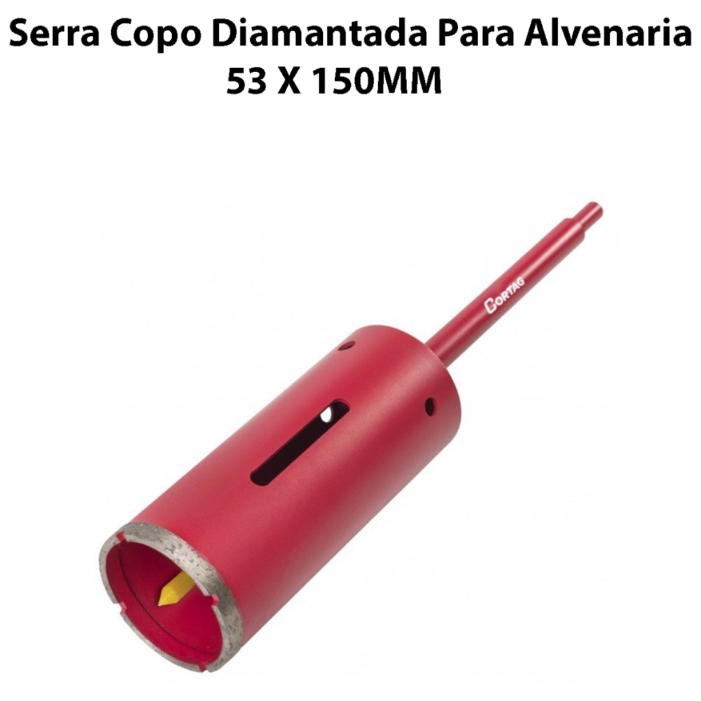 COMERCIAL VIPASA DISTRIBUIDORA. Serra Copo Profissional Longo Diamantada Para Alvenaria Concreto Parede Tamanho A Escolher - Cortag Serra Copo Longo Diamantada Para Alvenaria Concreto Parede Tamanho A Escolher - Cortag Original Modelos e Medidas: SERRA COPO DIAMANTADA - HASTE E PINO GUIA P/ ALVENARIA 53 X 150 MM Referência: 61899 A Serra Copo Diamantada é um equipamento especialmente indicado para furar a seco ou úmido, como: Pareces de alvenaria, Blocos de cimento, Granito, Mármore, pisos de revestimento cerâmicos, pedras decorativas, telhas, tijolos e materiais similares. - Especificações Técnicas: :: Corte à seco ou refrigerado. :: Espessura da camada diamantada: 2,5mm :: Altura da camada diamantada: 8mm :: Diâmetro: 53x150mm SERRA COPO DIAMANTADA - HASTE E PINO GUIA P/ ALVENARIA 65 X 150 MM Referência: 61900 A Serra Copo Diamantada é um equipamento especialmente indicado para furar a seco ou úmido, como: Pareces de alvenaria, Blocos de cimento, Granito, Mármore, pisos de revestimento cerâmicos, pedras decorativas, telhas, tijolos e materiais similares. - Especificações Técnicas: :: Corte à seco ou refrigerado. :: Espessura da camada diamantada: 2,5mm :: Altura da camada diamantada: 8mm :: Diâmetro: 65x150mm Muito utilizado na instalação de ar condicionado split, refrigeração, serviços de telecomunicações. A Serra Copo Diamantada é um equipamento especialmente indicado para furar a seco ou úmido: alvenaria, cerâmica, porcelanato, granito, mármore, refratário, pedra, parede, azulejo, piso e revestimento cerâmico, telha, bloco cerâmico, bloco de concreto, tijolo, tijolo baiano, pedra grés, pedra Miracema, ardósia, pedra Goiás, pedras ornamentais, pedra mineira, arenito, basalto, quartzito, nanoglass, silestone, stoneglass, mármore travertino, mármore importado, granito branco, granito duro, granilite, granitina entre outros materiais similares. UTILIZAÇÃO: A serra copo diamantada é ideal e muito utilizada na instalação de ar condicionado split, refrigeração, serviços de telecomunicações (Telecom), instalações elétricas, instalações de caixas 4x2 e 4x4, caixas de passagem, fornecidas, transações, guarda corpo, portas pivotantes , manutenções prediais/hidráulicas como ralos, registros, tubulações, esgotos, pontos de água, gás, fixação de escadas, ocultações, telas de proteção para piscina, redes entre outros. COMERCIAL VIPASA DISTRIBUIDORA.