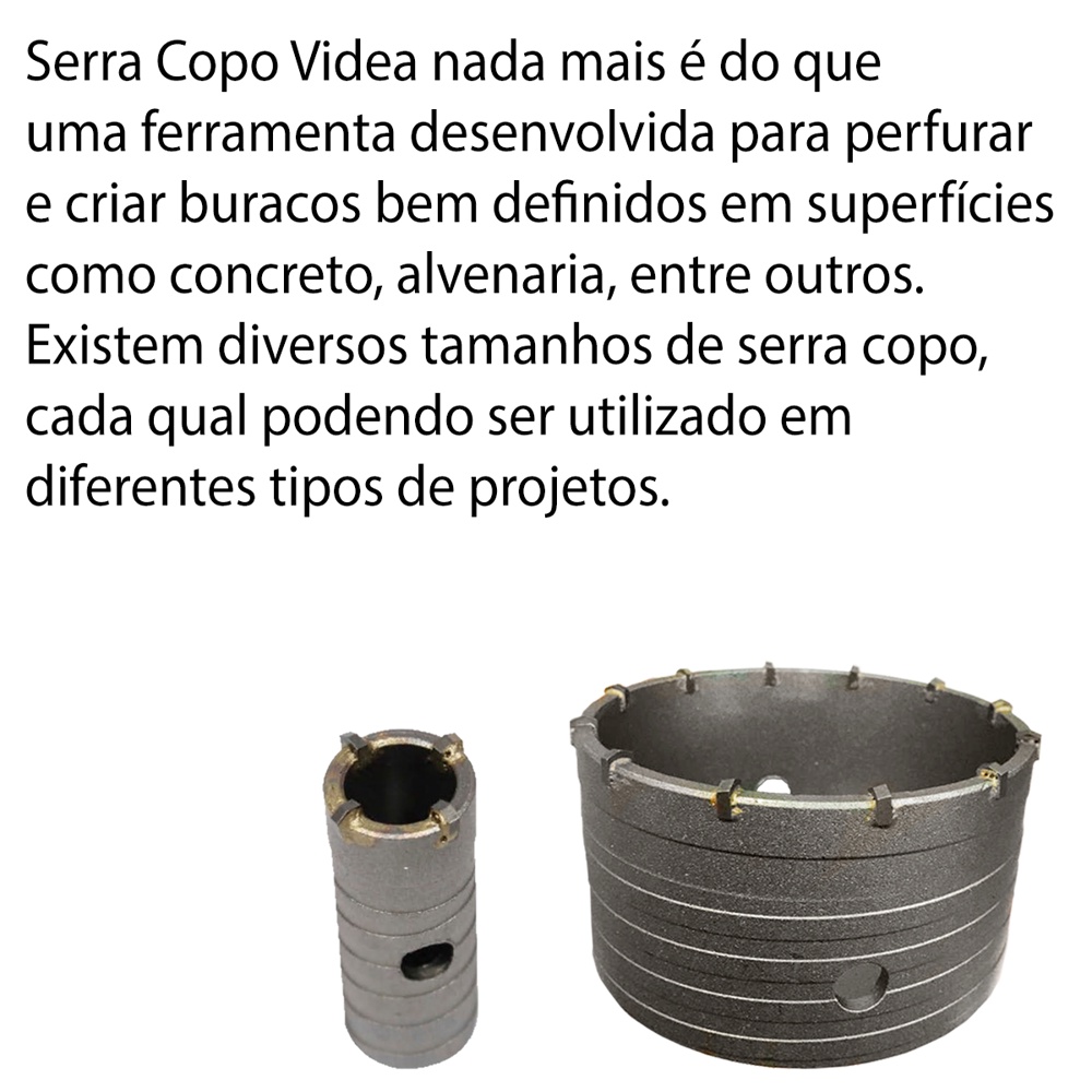 Serra Copo Videa Aço Carbono Para Concreto Alvenaria Várias Medidas Haste Separado Profissional