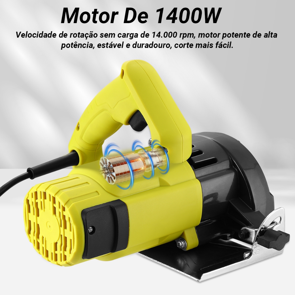 Serra Mármore Profissional 1400W 4.3/8 Pol Serra Marmore Cortador Elétrico 14000RPM Corte Ajustável Máxima Profundidade