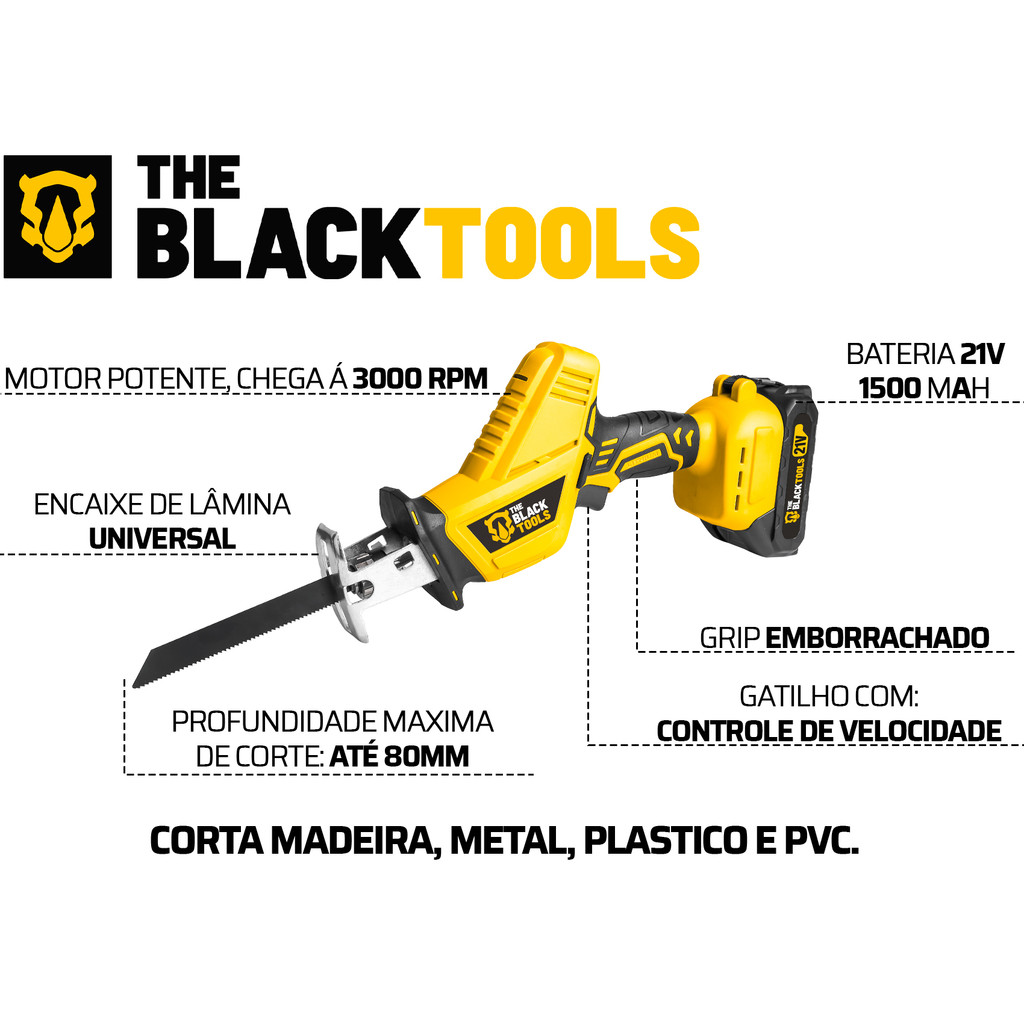 Serra Sabre A Bateria 21v Profissional Portatil 3000 Rpm Tcr21b The Black Tools