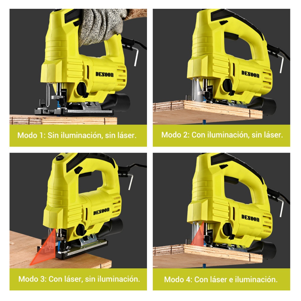 Serra Tico-tico 1000w Potência Contínua Profissional Com Laser E Luz De Led Corte Em Bisel DESOON