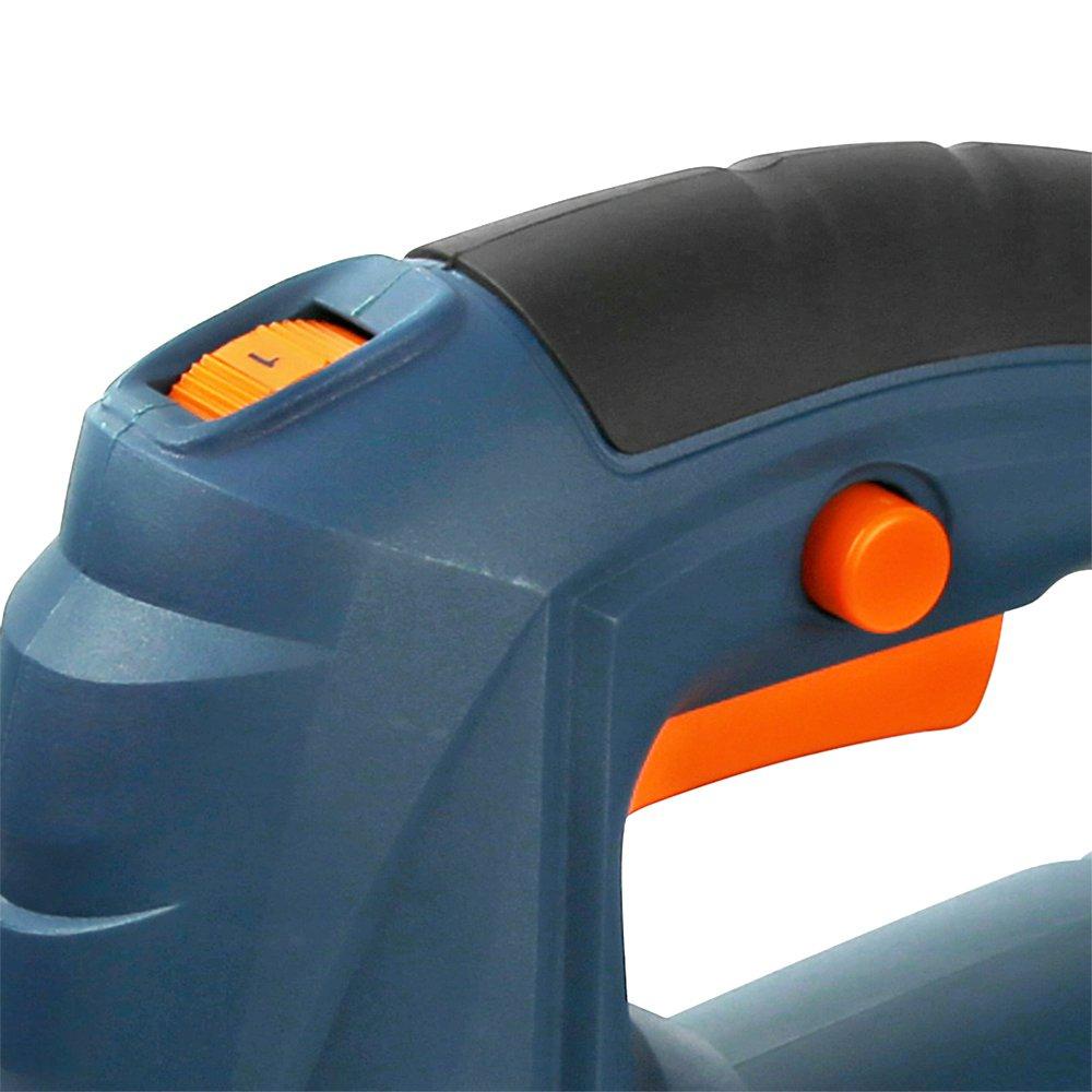 Trabalhar com madeira sempre é cansativo, porém gratificante. Seria interessante ter uma ferramenta leve, potente e segura para trabalhar. Ideal para realização de serviços com cortes retos, curvos, rasgos, chanfros, cortes de imersão entre outras formas personalizadas de corte. Podendo ser usada para trabalhar com madeira, metais e até plásticos, empunhadura ergonômica e macia proporcionando uma pegada firme e segura e confortável dando uma segurança maior ao operador. Possui proteção antirresíduos, botão de uso contínuo permitindo a utilização da serra de forma contínua sem a necessidade de segurar o gatilho cansando o usuário. E por fim uma base niveladora que proporciona uma versatilidade para um corte preciso e bem acabado, e claro, garantindo a segurança do operador. - Acompanha: :: 1 Chave Hexagonal :: 1 Tubo coletor de pó - Especificações Técnicas: :: Potência de entrada: 450W - 3/5HP :: Voltagem: 220V :: Frequência: 60Hz :: Velocidade de Corte: 500 - 3000 gpm :: Capacidade de Corte: # em Aço: 6 mm # em Madeira: 55 mm :: Controle de Velocidade :: Base de metal: Rotaciona até 45 - Garantia: 1 Ano