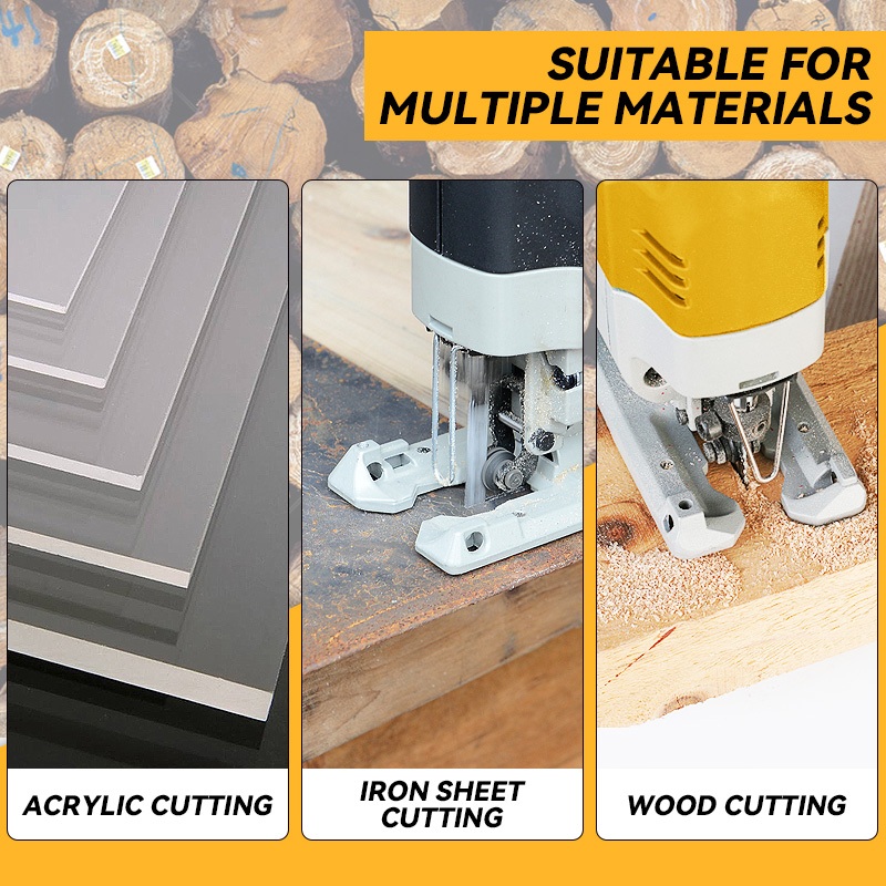 Máquina de serra de máquina - Projetado para usar uma variedade de lâminas de quebra-cabeça no mercado para que possa cortar madeira compensada, madeira, ferro, acrílico, PVC, zinco e outros, dependendo do tipo de lâmina de serra usada. Pode ser movido para a direita, zigzag, e circular com um ângulo de corte de até 45 graus - Pode ser movido para a esquerda para a direita, zigzag, e circular com um ângulo de corte de até 45 graus. 📌Detalhes do produto: Alavanca reciclável rápida com alavanca reciclável rápida Controle de velocidade de velocidade de velocidade do controle Motor de fio de cobre Isolamento duplo duplo isolamento duplo Velocidade variável Fonte de alimentação de energia: eletricidade Tensão Nominal: 110V/220V 50-60HZ Potência de entrada Nominal: 750W Velocidade sem carga: 600-3200r/min Cor da Caixa: Amarelo 📦Integridade do produto: Máquina de serra Chave em forma de L 1 chave em forma de L 1 lâmina de serra 1 Livro manual