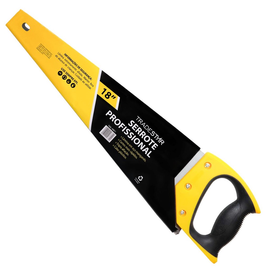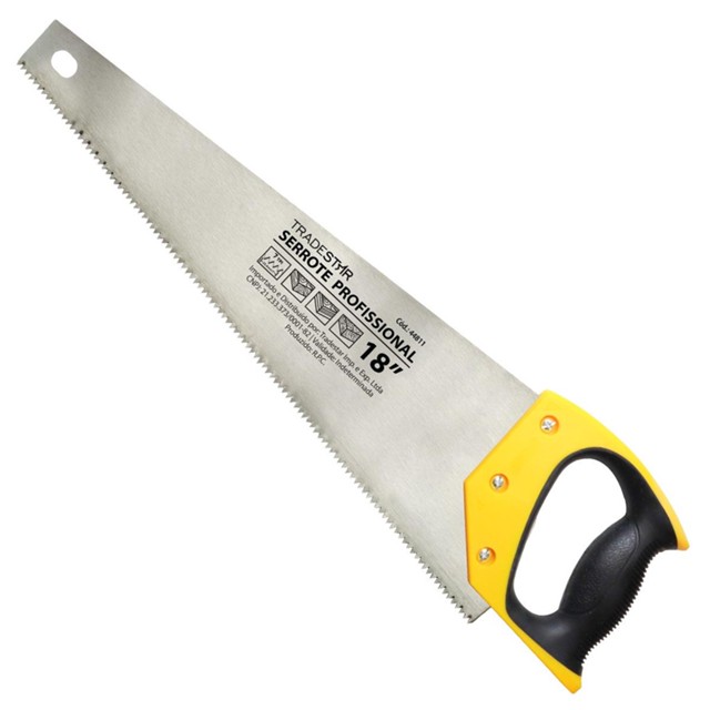 Serrote 18" Tradestar Cabo Plástico O Serrote Tradestar 18" com Cabo Plástico é projetado para oferecer cortes rápidos, limpos e precisos em madeira seca, MDF e compensado. Sua lâmina em aço manganês de alta resistência, combinada com tripla afiação, proporciona excelente desempenho, reduzindo o esforço do operador e garantindo maior durabilidade mesmo em usos intensivos. O cabo em plástico ergonômico foi desenvolvido para oferecer firmeza, segurança e conforto durante o manuseio, possibilitando maior controle nos cortes. Essa combinação torna o serrote uma ferramenta indispensável para carpinteiros, marceneiros, montadores de móveis e entusiastas de bricolagem que buscam eficiência e precisão em seus projetos. Especificações - Tamanho da lâmina: 18" - Material da lâmina: Aço manganês temperado com tripla afiação - Cabo: Plástico ergonômico e resistente - Indicação de uso: Madeira seca, MDF e compensado Itens inclusos - 1 Serrote 18" Cabo Plástico Garantia - 03 meses com o Fabricante