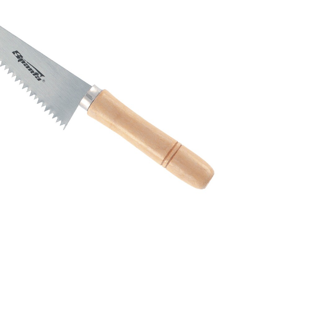 Produto: Serrote de ponta 7" para gesso e drywall - 2339055 Marca: Sparta Descrição: O Serrote de ponta 7" para gesso e drywall 2339055 da Sparta é uma ferramenta especializada projetada para facilitar e agilizar os trabalhos de construção e acabamento, especialmente aqueles envolvendo gesso. Com uma lâmina de 180 mm de comprimento e um design otimizado para cortar furos de diferentes formas ou figuras complexas em placas de gesso, este serrote é uma adição valiosa para qualquer kit de ferramentas de construção. A lâmina é fabricada em aço laminado a frio 65 Mn, um material escolhido por sua combinação ideal de resistência e elasticidade. Essas propriedades garantem que a lâmina possa suportar o estresse do corte sem se deformar, mantendo uma alta precisão durante o trabalho. Características: • Afiação de Dois Lados dos Dentes: A característica distintiva desta serra é a afiação de dois lados dos dentes, permitindo cortes eficientes em qualquer direção. Isso é particularmente útil ao trabalhar com drywall, onde cortes precisos e formas complexas são frequentemente necessários. Os dentes temperados cortam facilmente através das placas de gesso, proporcionando cortes limpos com mínimo esforço. • Revestimento Protetor: A superfície da lâmina recebe um revestimento de laca protetora, que serve a um duplo propósito. Primeiro, melhora a durabilidade da lâmina, protegendo-a contra a corrosão e o desgaste prematuro. Segundo, contribui para a suavidade do corte, reduzindo o atrito e facilitando a passagem da lâmina pelo material. • Design do Cabo: O cabo redondo, feito de madeira, é projetado para oferecer o máximo conforto durante o uso. A ergonomia do cabo permite um controle preciso da serra, enquanto a madeira proporciona uma sensação natural e agradável na mão. Além disso, o revestimento de laca no cabo aumenta sua durabilidade, protegendo-o contra desgaste, inchaço e outros danos causados pelo uso contínuo e exposição a materiais. • Versatilidade e Utilidade: Além de sua aplicação principal em cortes de drywall, este serrote tem a versatilidade para ser usado em uma variedade de outras tarefas de construção e acabamento. Sua capacidade de realizar cortes precisos e complexos o torna uma ferramenta indispensável para profissionais e entusiastas do DIY. Especificações: Lâmina: Aço carbono Cabo:" De madeira Diâmetro da lâmina em pol: 7 (180 mm). Dimensões (C x L x A): 28.00 x 2.00 x 2.00 centímetros Peso: 0.62 Kg