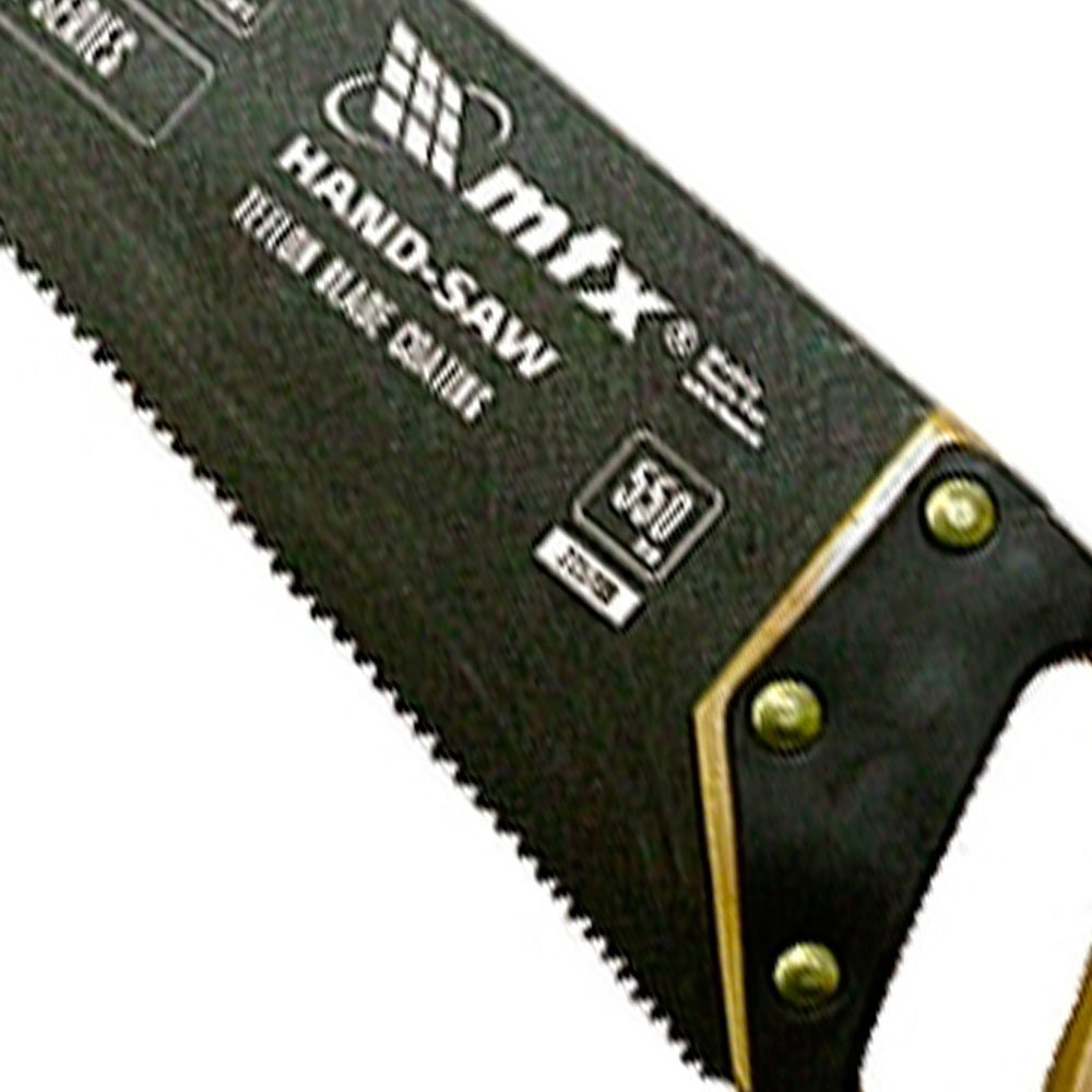 Serrote para Madeira Profissional 22 polegadas 550mm Black Series MTX - 235799 Serrote para madeira de 22" possui lâmina de aço com revestimento teflon, queimpede a corrosão e reduz a fricção do corpo ao serrar. Conta comcabo ergonômico de plástico, revestido com borracha termoplástica, oferecendo maior amortecimento e resistência à deformações. Especificações técnicas: Medida: 22 550mm Corpo feito em aço de alta qualidade 65 Mn Número de dentes por polegada: 7-8 dentes por polegada com afiação 3D Indicado para madeira e gesso Imagens Meramente Ilustrativas