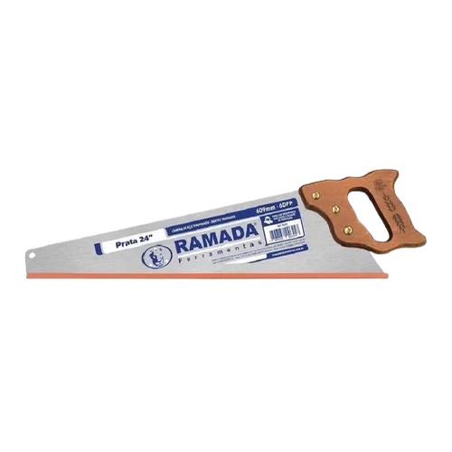 Serrote prata 24 polegadas Cabo fixado com 3 parafusos e lâmina com protetor plástico para os dentes. Permite um corte com qualidade, precisão e um bom acabamento. Marca: Ramada