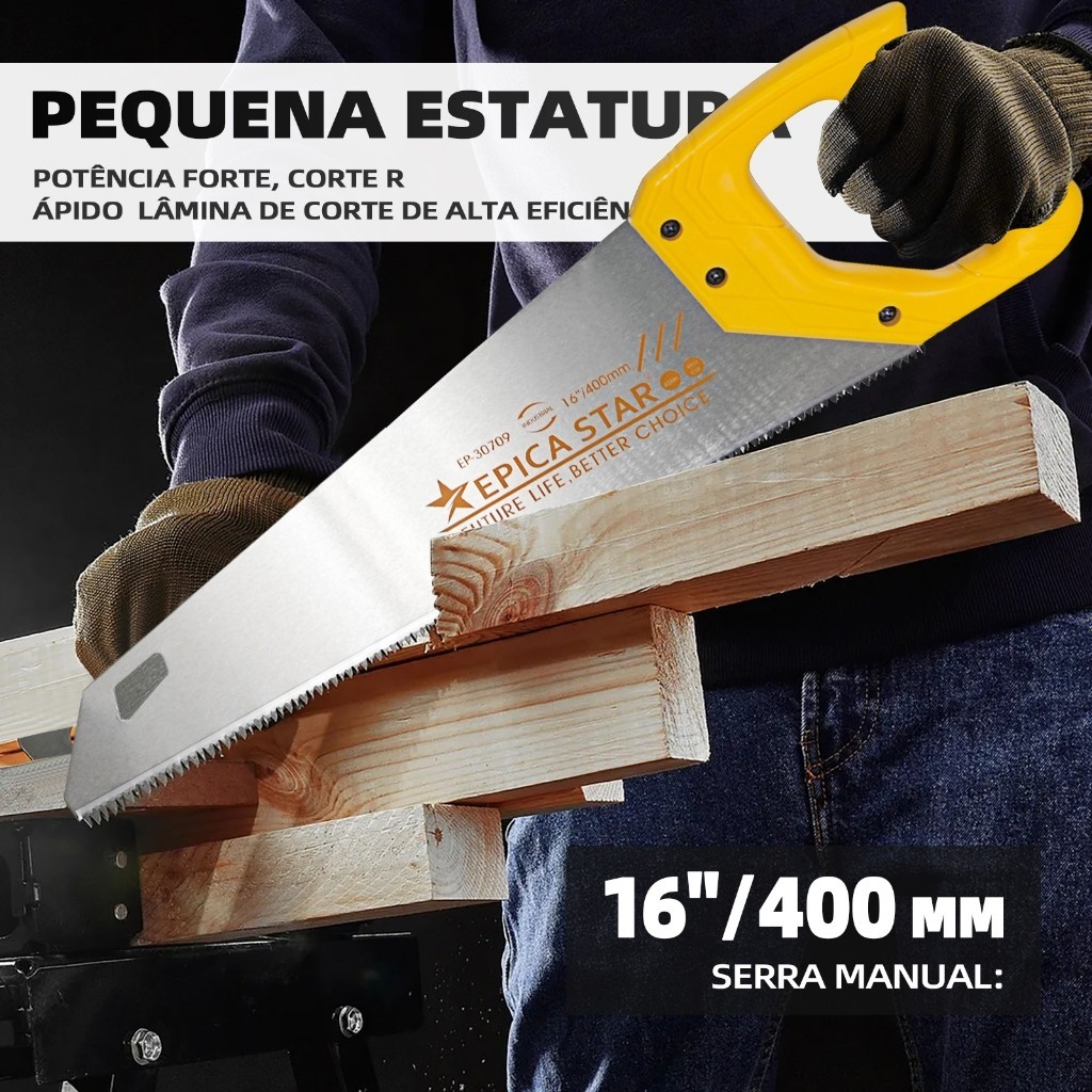 Optimized Product Description: EPICA Star 20" Manual Saw – Precision Cutting for Wood & Plastics Key Features: ✔ High Carbon Steel Blade – Durable and long-lasting, engineered for superior strength and resistance to wear. ✔ Impulse Hardening Technology – Enhances blade hardness for extended sharpness and efficient cutting. ✔ Dynamic Tooth Geometry – Aggressive cut teeth designed for fast, smooth, and precise cuts in various materials. ✔ Ergonomic Soft-Grip Handle – Reduces hand fatigue and improves control for comfortable, prolonged use. Applications: Ideal for cutting: Logs & Firewood Plywood & Chipboard Plastic Pipes & Sheets DIY Projects & Carpentry (Marcenaria) Specifications: Blade Length: 20 inches Type: Manual Hand Saw Best For: Woodworkers, Carpenters, and DIY Enthusiasts Why Choose EPICA Star? ✅ Professional-Grade Durability – Built to withstand heavy-duty use. ✅ Optimized Cutting Performance – Aggressive teeth design ensures faster, cleaner cuts. ✅ Comfortable Handling – Ergonomically designed for reduced strain. Perfect for woodworking, construction, and home improvement projects—this saw delivers reliable performance every time! Tags: 20" Hand Saw, Manual Saw, Woodworking Tools, Carpentry Saw, EPICA Star, Professional Hand Saw, Durable Steel Blade, Plywood Cutter, Plastic Cutting Saw. This optimized description enhances clarity, highlights key benefits, and improves SEO with relevant keywords while maintaining readability. Let me know if you'd like any further refinements!