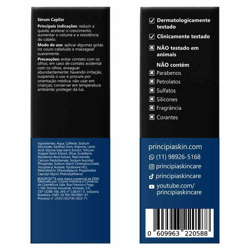 Sérum Capilar Principia SC-01 Baicapil, Cafeína e Beauplex 50ml Indicações: Principais * Reduzir a queda * Estimular o crescimento * Fortalecer os fios Complementares * Recuperar a pigmentação * Pro