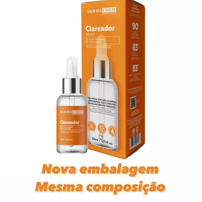 💎 Sérum Clareador de Melasma Dermachem – Clareia Manchas e Uniformiza o Tom da Pele ✨ Produto Original Dermachem Laboratory Agora com nova embalagem, mas a mesma fórmula e eficácia! (conforme imagens do anúncio) 🌿 PRINCIPAIS ATIVOS: Ácido Mandélico: ajuda a clarear manchas e renovar a pele Niacinamida: uniformiza o tom e reduz imperfeições Ácido Hialurônico: hidratação profunda e efeito antirrugas Silício Orgânico Ionizado: melhora a firmeza e elasticidade da pele Íons Ativos: potencializam a absorção dos ingredientes 💖 RESULTADOS COMPROVADOS: ✅ 92% das pessoas apresentaram clareamento da pele ✅ 84% relataram proteção contra o reaparecimento de manchas ✅ 84% observaram redução de rugas 🔬 Eficácia comprovada e avaliada por dermatologistas ✨ Resultados visíveis a partir de 14 dias de uso 🧴 Dermatologicamente testado 💆♀️ MODO DE USO: 🌞 Rotina Diurna: 1️⃣ Lave o rosto com sabonete de limpeza Dermachem. 2️⃣ Aplique 1 a 2 gotas do sérum no rosto, pescoço e colo, massageando com movimentos circulares. 3️⃣ Finalize com protetor solar. 4️⃣ Reaplique o protetor ao longo do dia. 🌙 Rotina Noturna: Com a pele limpa e seca, aplique novamente o sérum. ➡️ Utilize até 3x ao dia. 🚫 Não enxaguar. ⚠️ PRECAUÇÕES: Evite contato com os olhos. Em caso de irritação, suspenda o uso. Não ingerir. Uso externo. Evite aplicar em áreas lesionadas ou irritadas. Evite exposição solar durante o uso. Nas primeiras semanas, use em dias alternados para adaptação da pele. Conservação: mantenha em temperatura ambiente, longe da luz e umidade. 💬 Dúvidas? Fale conosco pelo chat! Estamos à disposição. ✅ Produto 100% Original Dermachem