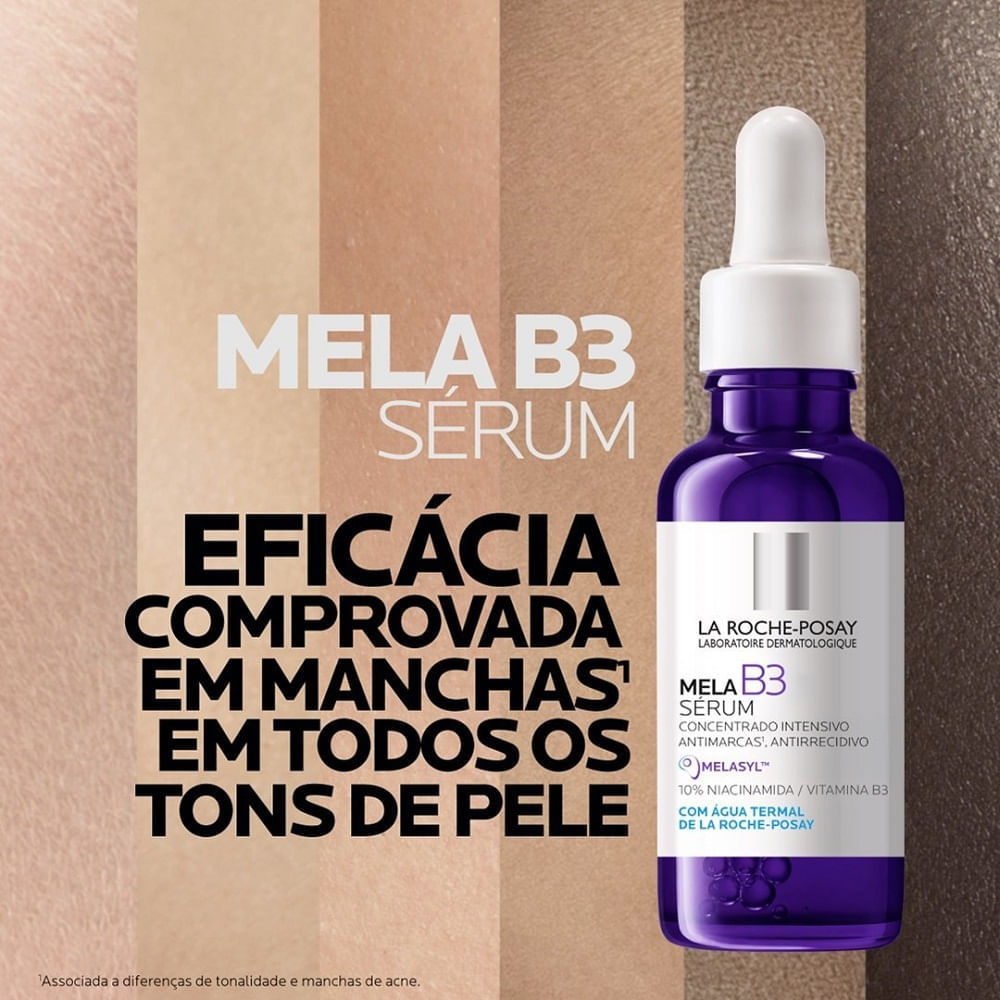 Sérum La Roche-Posay Mela B3 15ml O Sérum La Roche-Posay Mela B3 é um tratamento avançado para reduzir e prevenir manchas na pele, promovendo um tom mais uniforme e radiante. Sua fórmula inovadora contém Melasyl, um ativo patenteado que envelhece diretamente no excesso de melanina, e 10% de Niacinamida, que clareia e acalma a pele. Benefícios do Sérum Mela B3 Reduz visivelmente manchas escuras e persistentes Ajuda a prevenir o reaparecimento das manchas Hidratação profunda com Ácido Hialurônico Textura leve e rápida absorção, sem oleosidade Resultados visíveis em apenas 1 semana Como usar Aplique 3 a 4 gotas na pele limpa e seca do rosto, pescoço e colo. Massageie suavemente até uma absorção completa. Use pela manhã e/ou à noite e finalize com protetor solar. Pele uniforme e iluminada com La Roche-Posay! Compre online na Farmácia Indiana!