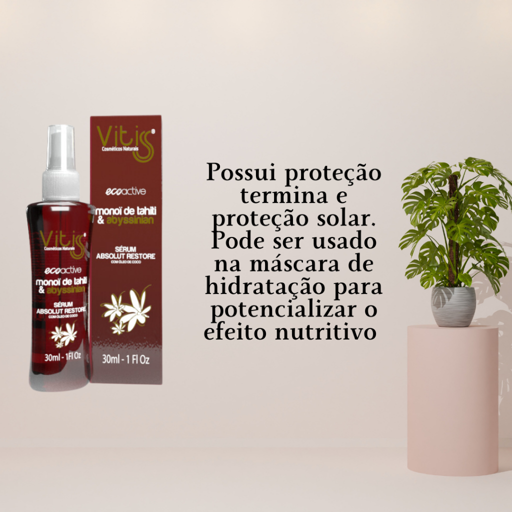 O Sérum Monoi de tahiti Vitiss oferece uma revolução no cuidado capilar. Enriquecido com a mágica dos óleos de Monoï de Tahiti e Abyssinian, combinado ao poderoso Óleo de Coco, este sérum de 30ml da Vitiss Cosméticos é sua nova arma secreta contra os danos. Imagine seu cabelo transformado, com a leveza e nutrição que apenas ingredientes exóticos podem proporcionar. A combinação única de óleos ricos em ácidos graxos penetra profundamente, reestabelecendo o equilíbrio lipídico da fibra capilar. Isso significa hidratação intensa, nutrição superior, e um brilho deslumbrante que reflete a saúde de seus cabelos. Além de trazer de volta a vida aos fios muito danificados, o Sérum Monoi de tahiti é perfeito para o dia a dia, oferecendo proteção térmica durante a escovação e um tratamento de brilho e controle de frizz para cabelos secos. Pode ser usado junto com a mascara capilar durante a hidratação dos cabelos, antes da escova e ou depois da escova. Adquira agora o Sérum Monoi de tahiti Vitiss e sinta a diferença desde a primeira aplicação.