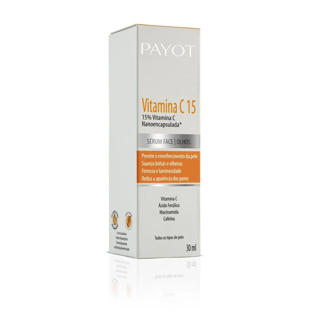 Descrição: O Sérum Vitamina C15 combina concentração de Vitamina C com Ácido Ferúlico, Niacinamida e Cafeína. Possui ação antioxidante - hidratante - rejuvenescedora da pele. Suaviza olheiras e inchaços na região dos olhos. Reduz a oleosidade e uniformiza a tonalidade da pele deixando-a com aparência mais firme e iluminada. Rápida absorção. MODO DE USAR: Com o auxílio das mãos ou de um pincel apropriado espalhe o sérum diretamente sobre a pele limpa e seca. Em seguida, faça a maquiagem como desejar. USO EXTERNO. MANTENHA FORA DO ALCANCE DAS CRIANÇAS. Conteúdo da embalagem: 30ml. Composição: Nanocápsulas contendo blend de Vitamina C, ácido ferúlico, resveratrol e floretin #Imagem ilustrativa. Cor do produto poderá variar dependendo da configuração do monitor ou celular.