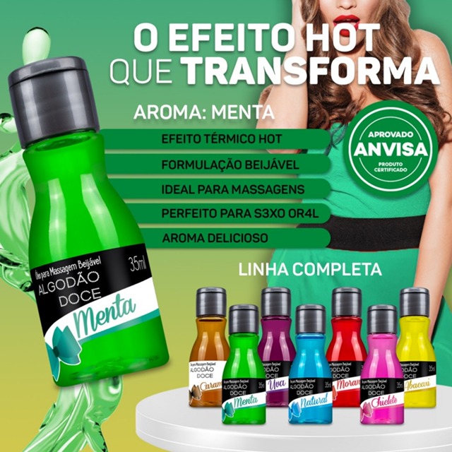 Experimente a prazerosa experiência proporcionada pelos ÓLEOS BEIJÁVEIS, produtos irresistivelmente saborosos e de qualidade excepcional. Formulados com ingrediente sublimes, eles deslizam pelo corpo com propriedades hidratantes e sedosas que trazem um viço especial à pele, tornando massagens, toques e estímulos ainda mais inesquecíveis com seu par, tendo ação beijável deliciosa. ÓLEO BEIJÁVEIS ALGODÃO DOCE Sua fórmula única de sensação térmica HOT proporciona um prazer instigante que pode ser intensificado com um simples sopro suave. Suas fragrâncias envolventes não apenas estimulam os desejos, mas também liberam fantasias de maneira perfeita e inovadora. Disponíveis nos aromas: Abacaxi, 🍍 Uva, 🍇 Menta, 🍃 Chiclete, 🍬 Morango, 🍓 Natural (algodão doce) 🍡 e Caramelo; 🍮 envolvendo seus momentos ínt!mos com tent4ção para escolher seu favorito! ÓLEOS BEIJÁVEIS SORVETE Apaixonantes, trazem o toque especialmente ICE que provoca arrepios do mais puro pr4zer, aumentando a sensibilidade da região aplicada com refrescância para tornar a experiência repleta de sensações inovadoras. Disponíveis nos aromas: morango, 🍓 cereja, 🍒 menta 🍃 e blue ice; 🩵 envolvem o momento ínt!mo com um deleite pr4zeroso. ÓLEOS BEIJÁVEIS 15ml Super indicado para sair da rotina em momentos ínt!mos e também para massagem corporal, têm ação HOT e ICE após entrar em contato com a pele, estimulando os desejos dos parceiros e libertando suas fantasias na hora da relação. 🔥 Disponíveis nos aromas HOT: morango, 🍓 menta, 🍃 chiclete, 🍬 chocolate, 🍫 espanhola, 🍹 sensação, 🩷 morango com açaí 💜 e uva. 🍇 ❄️ Disponíveis nos aroma ICE: morango 🍓 e menta. 🍃 ÓLEOS BEIJÁVEIS KERO+ Com textura veludada, você sentirá a doçura provoc4nte na sua pele para desfrutar do máximo de hidratação e sedosidade com seus ativos térmicos que trazem o aumento de conexão ao casal. 🔥 Disponíveis nos aromas HOT: morango, 🍓 banana com canela, 🍌 menta, 🍃 chocolate com pimenta, ❤️ uva, 🍇 pina colada, 🍍 rum, 🥃 maçã com canela, 🍎 chiclete, 🍬 amarula, 🍹 caipirinha, 🍋 chocolate. 🍫 ❄️ Disponível no aroma ICE: ice menta. 🩵 AS.16-12