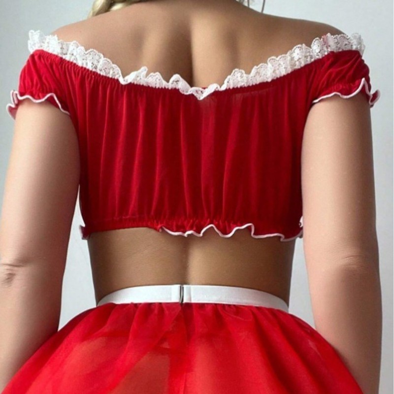 Sexy renda de um ombro roupa de empregada tentação Cosplay uniforme conjunto de Lingerie sexy