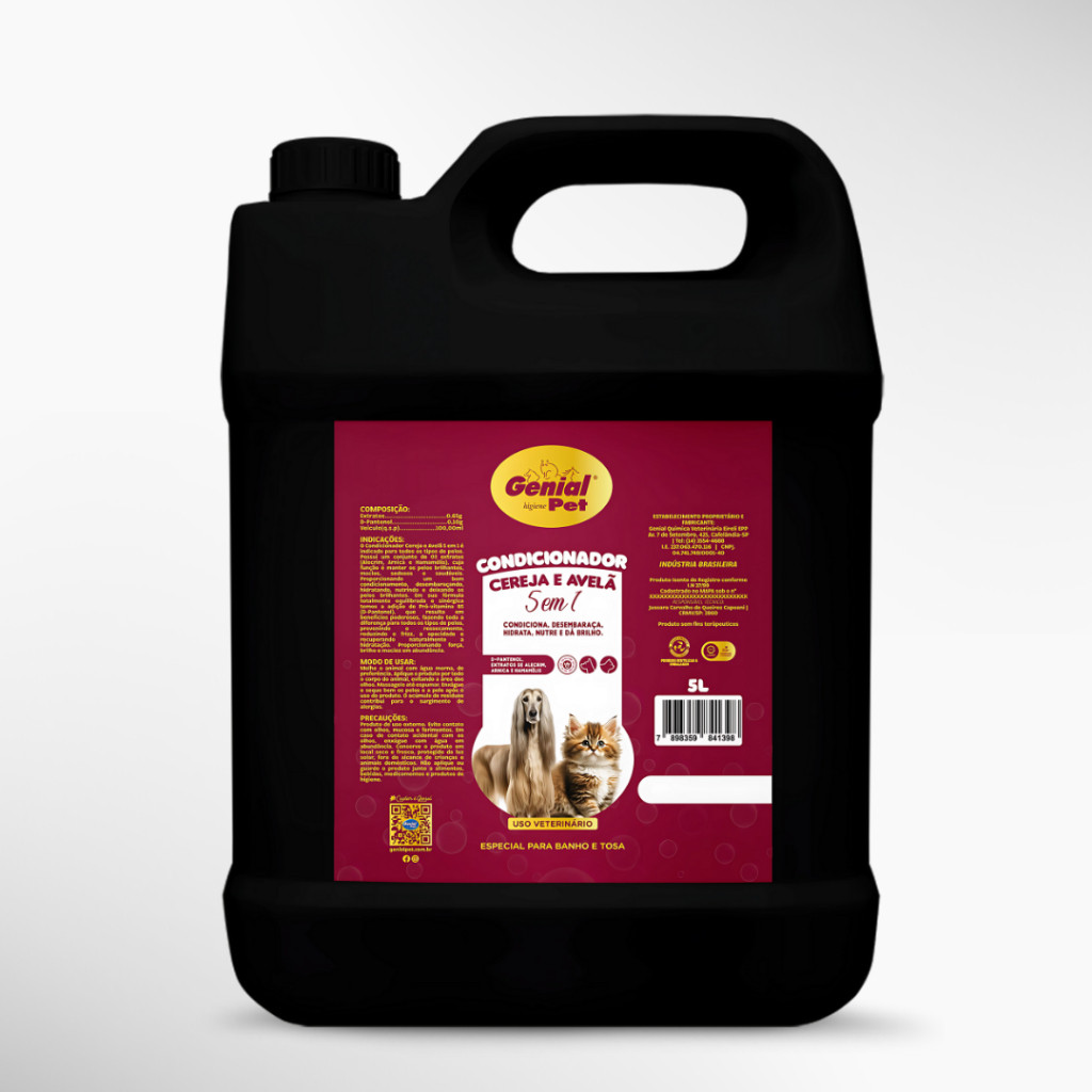 Shampoo 5 em 1 + Condicionador Neutro Cereja e Avelã Para Cães e Gatos Genial 5 Litros