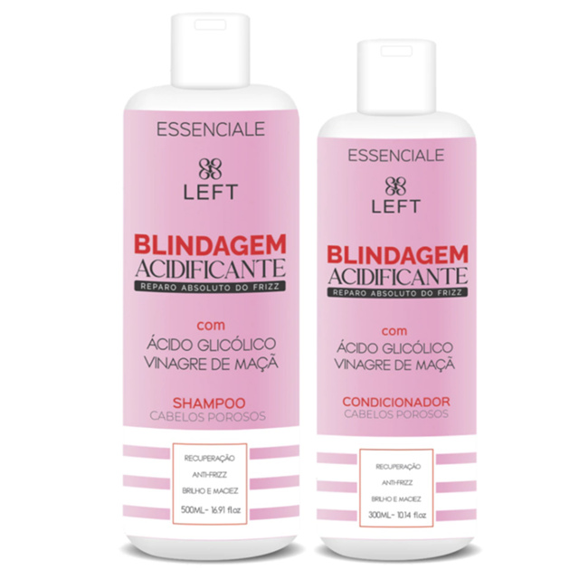 Shampoo 500ml + Condicionador 300ml Blindagem Acidificante Essenciale c/ Ácido Glicólico Mini Pack Left