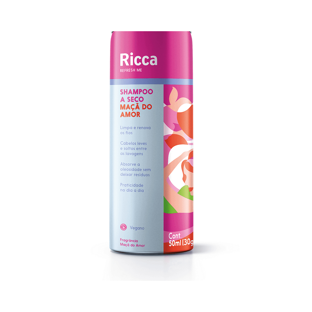 SHAMPOO A SECO RICCA MAÇÃ DO AMOR 50ML ====================================== O Shampoo a Seco Ricca Maçã do Amor é ideal para quem busca praticidade e frescor diário. Com seu formato compacto de 50ml, é perfeito para levar na bolsa e usar em qualquer lugar. Com fórmula inovadora, oferece limpeza eficiente sem água, deixando os fios soltos e renovados rapidamente. Desfrute de uma fragrância sutil e envolvente que mantém seus cabelos perfumados o dia inteiro. LIMPEZA INSTANTÂNEA Com fórmula inovadora, oferece limpeza eficiente sem água, deixando os fios soltos e renovados rapidamente. PERFUME ENCANTADOR DE MAÇÃ Desfrute de uma fragrância sutil e envolvente que mantém seus cabelos perfumados o dia inteiro. MODO DE USO =========== Para utilizar, agite bem o frasco, aplique o spray nas raízes e escove os cabelos. Repita o procedimento sempre que necessário para manter a sensação de limpeza. Agite bem o frasco antes de usar para garantir a mistura homogênea do produto. Aplique o produto diretamente na raiz dos cabelos, mantendo uma distância de cerca de 30 cm. Espere alguns segundos para que a fórmula absorva a oleosidade dos fios. Escove os cabelos para remover qualquer excesso e estilize como desejar. AGITAR Agite bem o frasco antes de usar para garantir a mistura homogênea do produto. APLICAR Aplique o produto diretamente na raiz dos cabelos, mantendo uma distância de cerca de 30 cm. ESPERAR Espere alguns segundos para que a fórmula absorva a oleosidade dos fios. ESCOVAR Escove os cabelos para remover qualquer excesso e estilize como desejar. CARACTERÍSTICAS E BENEFÍCIOS DO SHAMPOO A SECO RICCA MAÇÃ DO AMOR ================================================================= Este shampoo a seco remove a oleosidade dos cabelos instantaneamente, proporcionando leveza aos fios. É ideal para todos os tipos de cabelo, especialmente oleosos ou mistos. Portátil e fácil de usar, perfeito para viagens ou dias corridos onde não há tempo para lavar os cabelos. Sua tecnologia avançada garante que não fiquem resíduos após o uso, mantendo um visual natural. Basta alguns sprays no cabelo para renovar os fios, sem necessidade de enxágue ou secagem adicional. Mantém o frescor nos cabelos por mais tempo entre as lavagens tradicionais. PRATICIDADE NO DIA A DIA Portátil e fácil de usar, perfeito para viagens ou dias corridos onde não há tempo para lavar os cabelos. NÃO DEIXA RESÍDUOS VISÍVEIS Sua tecnologia avançada garante que não fiquem resíduos após o uso, mantendo um visual natural. APLICAÇÃO RÁPIDA E EFICIENTE Basta alguns sprays no cabelo para renovar os fios, sem necessidade de enxágue ou secagem adicional. FRESCOR PROLONGADO Mantém o frescor nos cabelos por mais tempo entre as lavagens tradicionais. ESPECIFICAÇÕES TÉCNICAS ======================= O produto vem em uma embalagem resistente em lata aerosol e é seguro para transporte. Sua aplicação deve ser realizada à distância recomendada para melhores resultados. Volume: 50ml Tipo de Produto: Shampoo a seco Material da Embalagem: Lata aerosol Fragrância: Maçã do amor Indicado Para: Cabelos oleosos e mistos Fórmula: Vegana SOBRE A MARCA RICCA =================== A Ricca é conhecida por oferecer produtos de beleza de alta qualidade e práticas inovadoras. Com uma linha de produtos que respeitam a saúde e o meio ambiente, a Ricca se destaca na cosmética vegana. Os produtos são desenvolvidos com ingredientes de alta qualidade para garantir resultados eficazes. A marca é vegana e não utiliza ingredientes de origem animal em suas formulações. A Ricca oferece soluções práticas para o dia a dia, ideal para quem busca agilidade na rotina de beleza. QUALIDADE SUPERIOR Os produtos são desenvolvidos com ingredientes de alta qualidade para garantir resultados eficazes. COMPROMISSO COM O MEIO AMBIENTE A marca é vegana e não utiliza ingredientes de origem animal em suas formulações. PRATICIDADE A Ricca oferece soluções práticas para o dia a dia, ideal para quem busca agilidade na rotina de beleza.