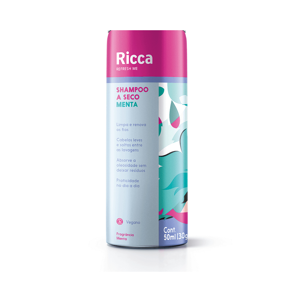 SHAMPOO A SECO RICCA MENTA 50ML =============================== O Shampoo a Seco Ricca Menta é ideal para manter os cabelos limpos sem água, com uma fórmula refrescante que revitaliza os fios. Sua fragrância de menta proporciona leveza e frescor instantâneos, tornando-o perfeito para o dia a dia agitado. Este shampoo absorve rapidamente a oleosidade, garantindo uma limpeza eficaz em qualquer lugar e momento. Desfrute de uma experiência revigorante com a fragrância única de menta, que revitaliza seus cabelos e proporciona frescor duradouro. LIMPEZA INSTANTÂNEA Este shampoo absorve rapidamente a oleosidade, garantindo uma limpeza eficaz em qualquer lugar e momento. SENSAÇÃO REFRESCANTE DE MENTA Desfrute de uma experiência revigorante com a fragrância única de menta, que revitaliza seus cabelos e proporciona frescor duradouro. MODO DE USO =========== Para usar o Shampoo a Seco Ricca Menta, siga os passos simples para garantir cabelos limpos e soltos. Agite bem o produto antes de usar para garantir uma mistura homogênea. Aplique diretamente nas raízes secas, focando nas áreas mais oleosas. Escove bem para distribuir uniformemente o produto e remover qualquer excesso. Finalize estilizando os cabelos como de costume para um visual natural e leve. AGITAR Agite bem o produto antes de usar para garantir uma mistura homogênea. APLICAR Aplique diretamente nas raízes secas, focando nas áreas mais oleosas. ESCOVAR Escove bem para distribuir uniformemente o produto e remover qualquer excesso. FINALIZAR Finalize estilizando os cabelos como de costume para um visual natural e leve. CARACTERÍSTICAS E BENEFÍCIOS DO SHAMPOO A SECO RICCA MENTA ========================================================== O Shampoo a Seco Ricca Menta é caracterizado por sua fórmula vegana e livre de resíduos visíveis. É perfeito para todos os tipos de cabelo, proporcionando um acabamento natural e sensação de limpeza. Elimina rapidamente a oleosidade dos cabelos, oferecendo leveza e aparência limpa instantaneamente. O design compacto facilita o transporte, permitindo usá-lo em viagens ou no dia a dia corrido. Basta agitar bem o produto, aplicar nas raízes secas e escovar para distribuir uniformemente. Deixa os cabelos com aparência saudável entre lavagens tradicionais, sem deixar resíduos visíveis. ABSORÇÃO EFICIENTE DA OLEOSIDADE Elimina rapidamente a oleosidade dos cabelos, oferecendo leveza e aparência limpa instantaneamente. FRASCO PORTÁTIL DE 50ML O design compacto facilita o transporte, permitindo usá-lo em viagens ou no dia a dia corrido. APLICAÇÃO RÁPIDA E FÁCIL Basta agitar bem o produto, aplicar nas raízes secas e escovar para distribuir uniformemente. CABELOS LEVES E SOLTOS Deixa os cabelos com aparência saudável entre lavagens tradicionais, sem deixar resíduos visíveis. ESPECIFICAÇÕES TÉCNICAS ======================= O produto conta com um frasco cilíndrico e dispenser spray que facilitam a aplicação. Sua composição com notas de menta proporciona uma experiência olfativa agradável. Tipos de Cabelo: Cabelos Oleosos e Mistos Volume: 50 ml Peso Líquido: 130 g Formato: Aerosol Fragrância: Menta SOBRE A MARCA RICCA =================== A marca Ricca é reconhecida por seus produtos inovadores e de alta qualidade no universo da beleza. Comprometida com a sustentabilidade, todos os produtos Ricca são veganos, respeitando a natureza e os animais. Escolher Ricca é optar por cuidado e responsabilidade com o meio ambiente. Todos os produtos são formulados sem ingredientes de origem animal. A marca promove práticas que respeitam o meio ambiente. Ricca traz novidades que atendem às necessidades do consumidor moderno. PRODUTOS VEGANOS Todos os produtos são formulados sem ingredientes de origem animal. COMPROMISSO COM A SUSTENTABILIDADE A marca promove práticas que respeitam o meio ambiente. INOVAÇÃO EM BELEZA Ricca traz novidades que atendem às necessidades do consumidor moderno.