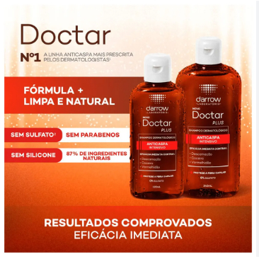 Shampoo Anticaspa Darrow Doctar Plus 240ml - Eficácia Imediata, Sem Sulfatos, 87% Naturais