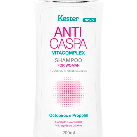 O Shampoo Anticaspa For Woman Kester 200ml combate a caspa e auxilia no controle da oleosidade do couro cabeludo. Fórmula suave, limpa profundamente e deixa os fios macios e hidratados. Ideal para uso diário.