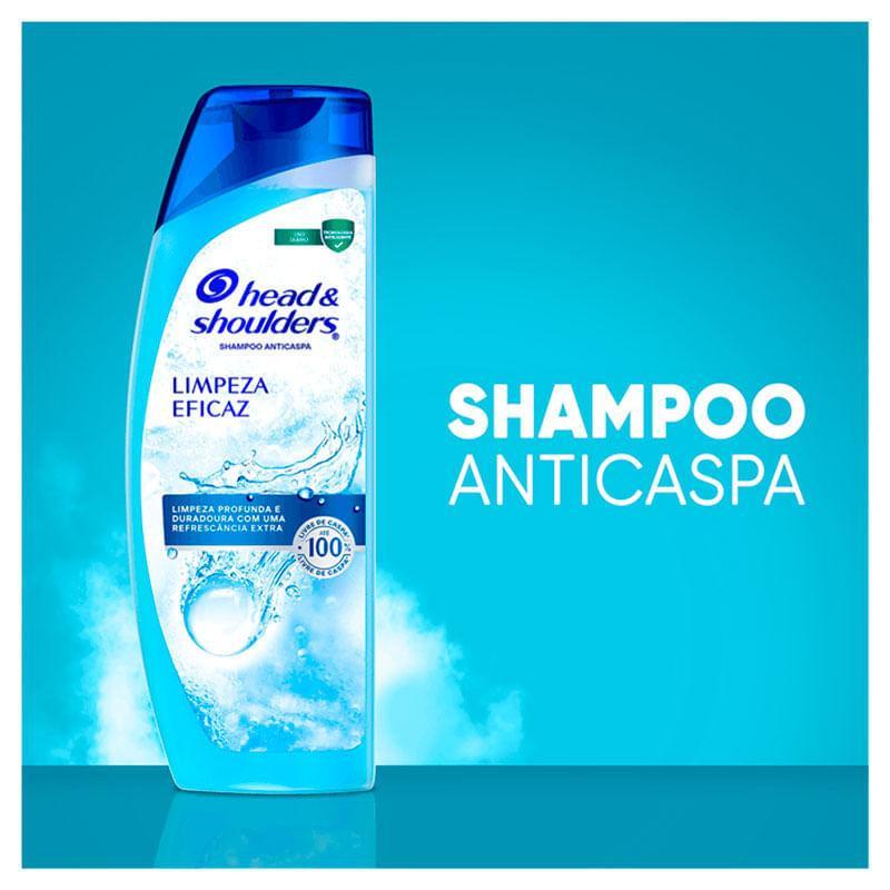 O Shampoo Head & Shoulders Limpeza Eficaz é um shampoo de cuidado para o seu cabelo e couro cabeludo, que proporciona uma limpeza profunda e duradoura com uma refrescância extra. Com textura leve e perfume refrescante, ele age eliminando a oleosidade e impurezas deixadas por gel e cremes e sua fórmula com pH balanceado, é efetiva contra caspa e suave com o cabelo. A tecnologia inteligente de H&S possui 2x mais concentração de ativos anticaspa, agindo como um escudo de proteção o dia todo. O ideal é usar diariamente para sentir a sensação de limpeza. Principais Características: Fórmula com tecnologia inteligente: efetiva contra a caspa e suave com o seu cabelo | Limpa, remove oleosidade, impurezas e caspa visível, com uso regular. | Fórmula com ph balanceado. | Limpa, remove a oleosidade e impurezas deixadas por gel/cremes. | Limpeza profunda e duradoura com uma refrescância extra.