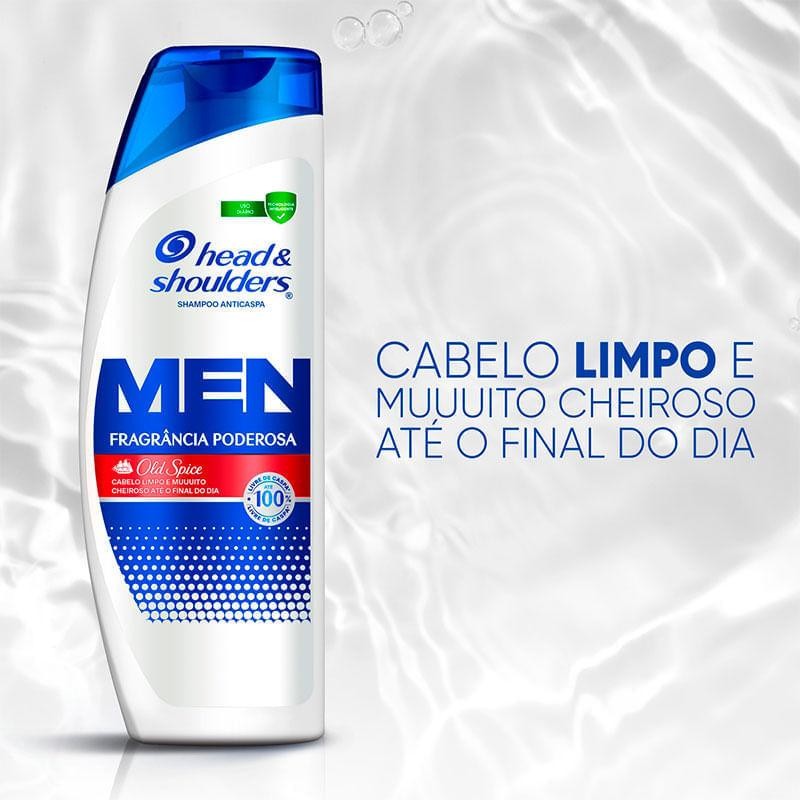 O Shampoo Head & Shoulders Fragrância Poderosa com Old Spice é uma experiência refrescante e cheirosa para seu banho, ele limpa, remove a oleosidade e até 100% das impurezas dos seus cabelos, enquanto o perfume de Old Spice te garante um cheiro incrível que vai te acompanhar ainda depois do banho. Sua fórmula com pH balanceado, é efetiva contra caspa e suave com o cabelo. A tecnologia inteligente de H&S possui 2x mais deposição de ativos anticaspa, agindo como um escudo de proteção o dia todo.