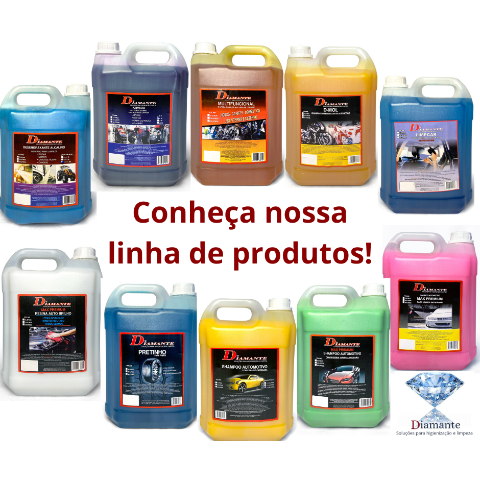 SHAMPOO COM CERA DE CARNAÚBA 1X40 Shampoo automotivo com cera de carnaúba Diamante é um produto de excelente qualidade, com sua fórmula balanceada proporciona um ótimo rendimento, além de ter uma ótima saponificação (espuma) e poder de limpeza (detergência), ainda deixa um brilho na pintura veicular. CARACTERÍSTICAS -Ótimo rendimento (chegando até 1x40 para sujeira leve e 1x20 para sujeira pesada) -Acompanha Cera de Carnaúba deixando a pintura com um ótimo brilho -Produto com pH balanceado (neutro), não prejudica a camada de cristalização da pintura APLICAÇÃO Pode ser aplicado em qualquer tipo de veículo de porte grande ou pequeno, de qualquer cor. Pode ser aplicado também em carros vitrificados ou cristalizados, devido ao pH ser balanceado. MODO DE USO 1_Diluir o produto na quantidade indicada acima; 2_Aplicar o produto já diluído na pintura do veículo com o auxílio de uma esponja ou luva para lavagem automotiva; 3_Retirar completamente o produto com água; 4_Em seguida secar com um pano macio (recomendamos o pano de microfibra). RESTRIÇÕES -Não lavar em ambiente descoberto, em baixo do sol; -Não lavar com a superfície aquecida; -Não deixar o produto na pintura veicular por muito tempo. INFORMAÇÕES ADICIONAIS -Quantidade do anúncio: 500 ml -Diluição: Para sujeira pesada 100ml do Shampoo com Cera Diamante para 2 litros de água. Para sujeira leve 1 litro do Shampoo com Cera Diamante para 40 litros de água. -Também temos na formulação de 1 litro de shampoo para 200 litros de água. -Manter o produto fora do alcance de crianças ou animais de estimação. Não ingerir o produto. -Manter ao abrigo do sol ou chuva. ------------------------------------------------------------------------------------------------------------------------------ A Diamante tem uma linha completa de produtos para lava rápido, empresas e pessoas que amam cuidar do seu veículo. Confira nossos anúncios! Trabalhamos com a linha completa para higienização e limpeza automotiva. Solicite o seu kit!