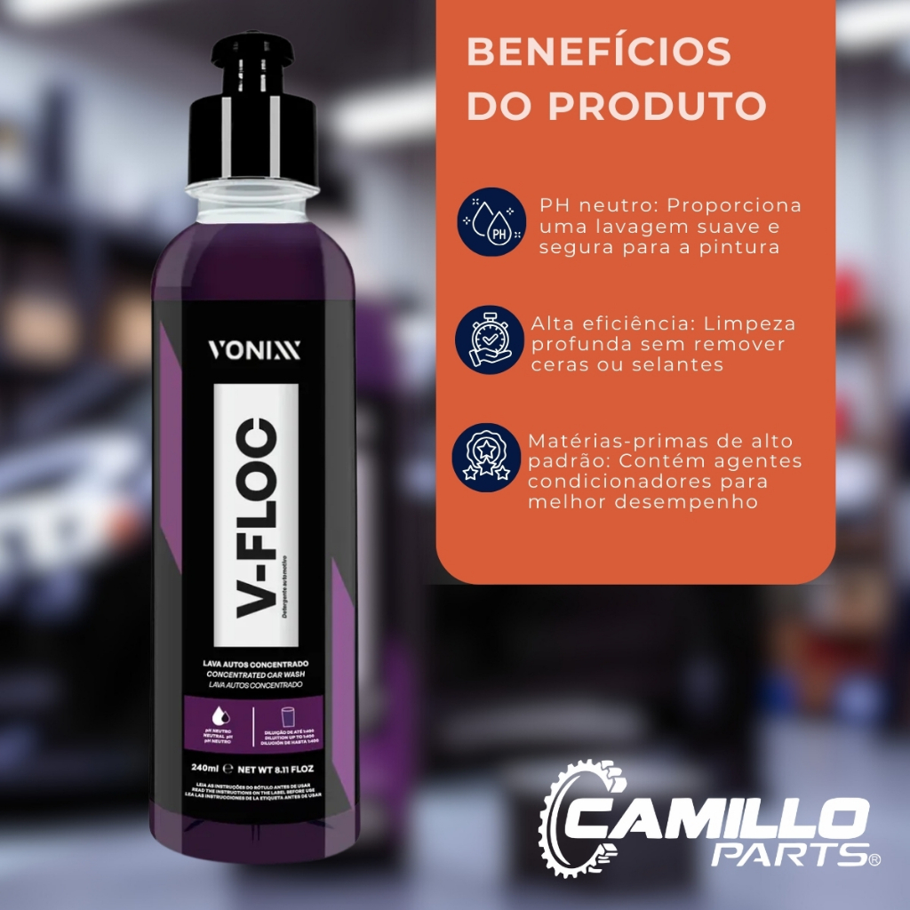 Shampoo Automotivo Neutro Vonixx V-Floc 240ml Super Concentrado Alto Rendimento