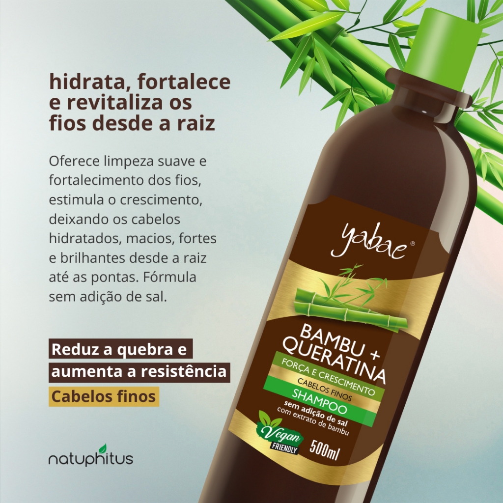 Shampoo Yabae 500ml 💡Transforme seus fios com o poder da linha Yabae! O Shampoo Yabae é cuidadosamente formulado para hidratar, dar brilho e fortalecer a fibra capilar. Ideal para uso diário, este tratamento combina o extrato do ativo com uma fórmula suave, sem adição de sal, corante e parabenos. Seu cabelo fica mais bonito, solto e leve todos os dias! 📍 Shampoo Babosa Hidratação | Nutrição | Crescimento Saudável 📌 Hidratação Profunda ✨ Brilho Radiante e Sedosidade 🌿 Com Extrato de Babosa | Sem adição de sal, Sem corante, Vegano ✅ Principais Benefícios: * Fortalece a fibra capilar, promovendo crescimento saudável * Hidrata profundamente * Protege contra o ressecamento * Revitaliza os cabelos * Brilho natural * Maciez * Antifrizz * Pode ser usado a partir dos 12 anos 📍 Shampoo Bambu e Queratina Força | Hidratação | Crescimento saudável | Antifrizz 📌 Hidratação Profunda ✨ Crescimento Fortificado 🌿 Com Extrato de Bambu | Sem adição de sal, Sem corante, Vegano ✅ Principais Benefícios: * Fortalece a fibra capilar, promovendo crescimento saudável * Hidrata profundamente * Protege contra o ressecamento * Revitaliza os cabelos * Brilho natural * Maciez * Antifrizz * Pode ser usado a partir dos 12 anos 📍 Shampoo Camomila Realce dos Tons Dourados | Sedosidade | Brilho Radiante 📌 Realce dos tons dourados ✨ Brilho radiante e sedosidade 🌿 Com Extrato de Camomila | Sem adição de sal, Sem corante, Vegano ✅ Principais Benefícios: * Realce dos tons dourados * Sedosidade * Brilho radiante * Maciez para fios delicados * Adstringência para o couro cabeludo * Vitalização * Pode ser usado a partir dos 12 anos 📍 Shampoo Guaxima Crescimento Fortificado | Redução da Queda Devido à Quebra 📌 Fortalecimento dos fios ✨ Brilho e Nutrição | Redução da Queda Devido à Quebra 🌿 Com Extrato de Guaxima | Sem adição de sal, Sem corante, Vegano ✅ Principais Benefícios: * Fortalece os fios * Previne a queda por quebra mecânica * Nutrição intensa * Brilho natural * Maciez prolongada * Pode ser usado a partir dos 12 anos 📍 Shampoo Jaborandi Fortalecimento | Revitalização | Maciez 📌 Fortalecimento dos fios ✨ Revitalização | Maciez 🌿 Com Extrato de Jaborandi | Sem adição de sal, Sem corante, Vegano ✅ Principais Benefícios: * Limpeza eficaz * Controle da oleosidade no couro cabeludo * Fortalecimento * Nutrição dos fios * Revitalização * Brilho intenso * Maciez * Tonificação do couro cabeludo * Promove um crescimento saudável * Pode ser usado a partir dos 12 anos 📢 Modo de Uso: * Aplique nos cabelos úmidos e massageie o couro cabeludo suavemente. Enxágue bem. Se necessário, repita a aplicação. Para melhores resultados, use o condicionador da mesma linha. 📅 Uso diário 🌱 Fórmula Consciente: * Sem adição de sal * Sem parabenos * Sem corantes * Vegano * Cruelty Free (não testado em animais) ⚠️ Precauções: * Uso externo * Evite contato com os olhos * Em caso de irritação, suspenda o uso * Mantenha em local seco, fresco e longe da luz * Mantenha fora do alcance de crianças
