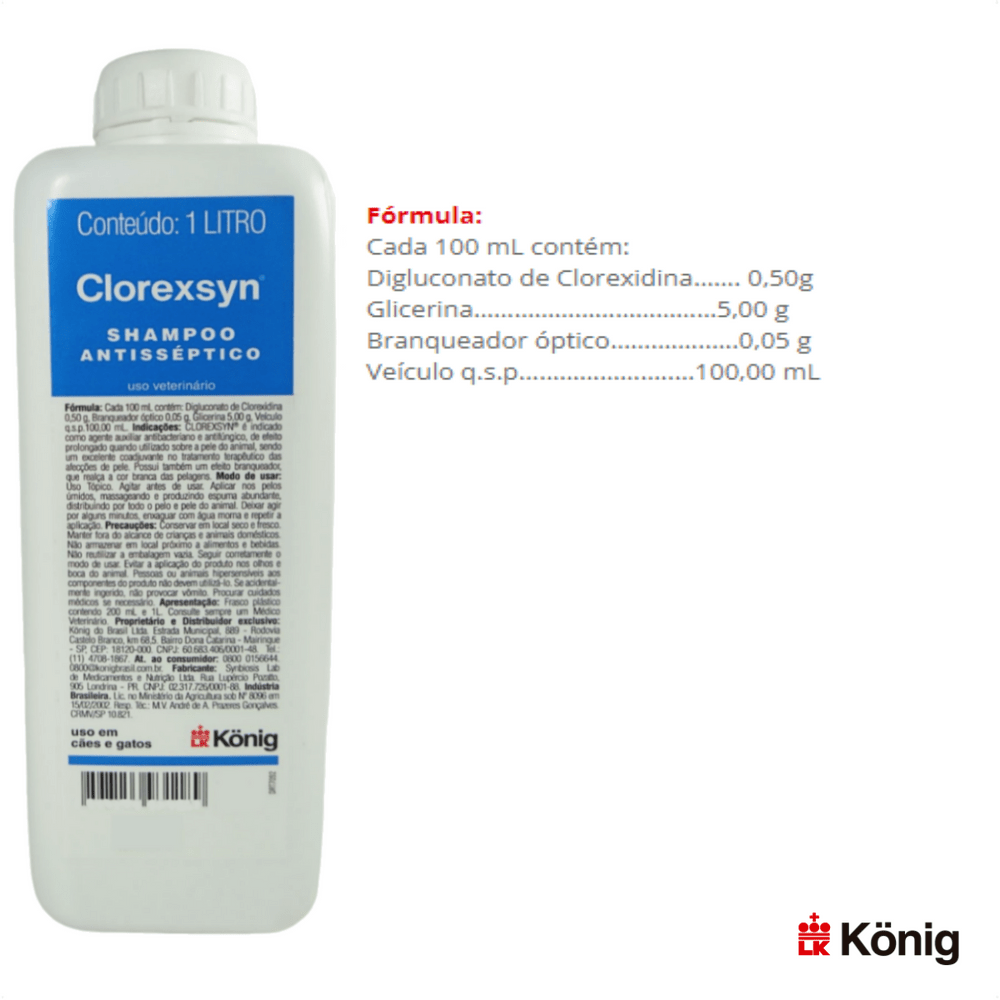 Shampoo Clorexsyn 1L para Cães Gatos König