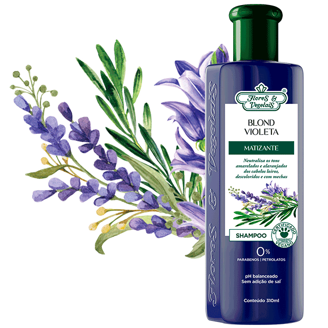 A Flores & Vegetais está de cara nova, trazendo inovação e modernidade em suas fórmulas, todos os produtos estão certificados com o SELO VEGANO, que lhes assegura quanto a nossa seriedade e compromisso com você, com os animais e com o meio ambiente! O Shampoo Blond Violeta Matizante Flores & Vegetais traz fórmula balanceada, que oferece todos os cuidados que o cabelo loiro necessita, hidratação, brilho intenso e proteção da cor. Elaborado com complexo de extratos vegetais, combinados com micropigmentos violeta efetivos, que neutralizam os tons amarelados e alaranjados indesejados nos cabelos loiros, descoloridos e com mechas proporcionando tons mais frios e brilhantes. Componentes Aqua, Sodium Laureth Sulfate, Cocamide DEA, Lauryl Glucoside, Cocamidopropyl Betaine, Glycol Distearate, Stearamidopropyl Dimethylamine, Parfum, Glycerin, CI 60730, DMDM Hydantoin, Guar Hydroxypropyltrimonium Chloride, Lactic Acid, Butylphenyl Methylpropional, Disodium EDTA, PEG-14M, Linalool, D-Limonene, CI 20470, Lavandula Angustifolia Flower/Leaf/Stem Extract, Rosmarinus Officinalis (Rosemary) Leaf Extract, Viola Odorata Flower/Leaf Extract, Methylchloroisothiazolinone / Methylisothiazolinone. *Sem adição de Cloreto de Sódio. Modo de usar Aplique nos cabelos molhados, massageando suavemente da raiz até as pontas. Deixe agir por cerca de 3 a 5 minutos e enxágue cuidadosamente. Repita a operação, se necessário. Para prolongar e intensificar o efeito do Shampoo, utilize o Condicionador Blond Violeta Matizante Flores & Vegetais. Utilize sempre que desejar eliminar o efeito amarelado dos fios. Não é recomendado o uso diário. O Condicionador Blond Violeta Matizante Flores & Vegetais, traz fórmula balanceada, que oferece todos os cuidados que o cabelo loiro necessita, hidratação, brilho intenso e proteção da cor. Elaborado com complexo de extratos vegetais, combinados com micropigmentos violeta efetivos, que neutralizam os tons amarelados e alaranjados indesejados nos cabelos loiros, descoloridos e com mechas proporcionando tons mais frios e brilhantes. Componentes Aqua, Cetearyl Alcohol, Behentrimonium Chloride, Cocos Nucifera (Coconut) Oil, Stearamidopropyl Dimethylamine, Glycerin, Parfum, Lactic Acid, DMDM Hydantoin, CI 60730, Amodimethicone, Butylphenyl Methylpropional, Disodium EDTA, BHT, Linalool, CI 20470, D-Limonene, Trideceth-12, PEG-90M, Cetrimonium Chloride, Lavandula Angustifolia Flower/Leaf/Stem Extract, Rosmarinus Officinalis (Rosemary) Leaf Extract, Viola Odorata Flower/Leaf Extract, Methylchloroisothiazolinone / Methylisothiazolinone. Modo de usar Após lavar os cabelos com o Shampoo, aplique o Condicionador e massageie suavemente. Deixe agir por cerca de 3 a 5 minutos e enxágue cuidadosamente. Para prolongar e intensificar o efeito do Condicionador utilize o Shampoo Blond Violeta Matizante Flores & Vegetais. Utilize sempre que desejar eliminar o efeito amarelado dos fios. Não é recomendado o uso diário. Precauções Evite o contato com os olhos e mucosas. Em caso de contato acidental com os olhos, enxaguar imediatamente com água em abundância. Não ingerir. Não aplicar se o couro cabeludo estiver irritado ou lesionado. Em caso de irritação, suspender o uso e procurar orientação médica. Manter fora do alcance das crianças. Lavar as mãos após o uso para evitar resíduos azulados na pele. Não usar em cílios e sobrancelhas. Conservar em local fresco e seco, ao abrigo de luz. USO EXTERNO.