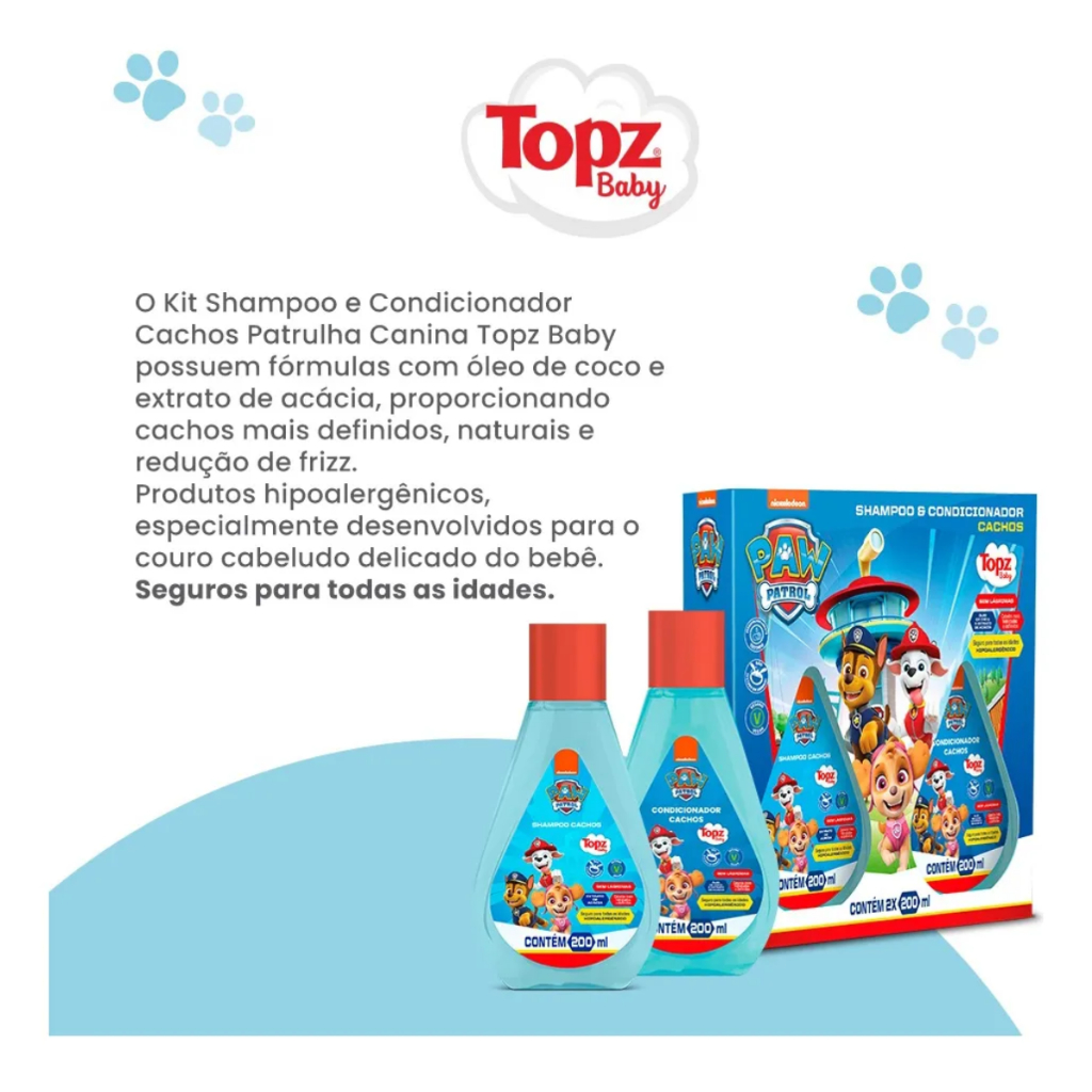 Shampoo + Condicionador Topz Baby Patrulha Canina Cachos Hidratados 200ml